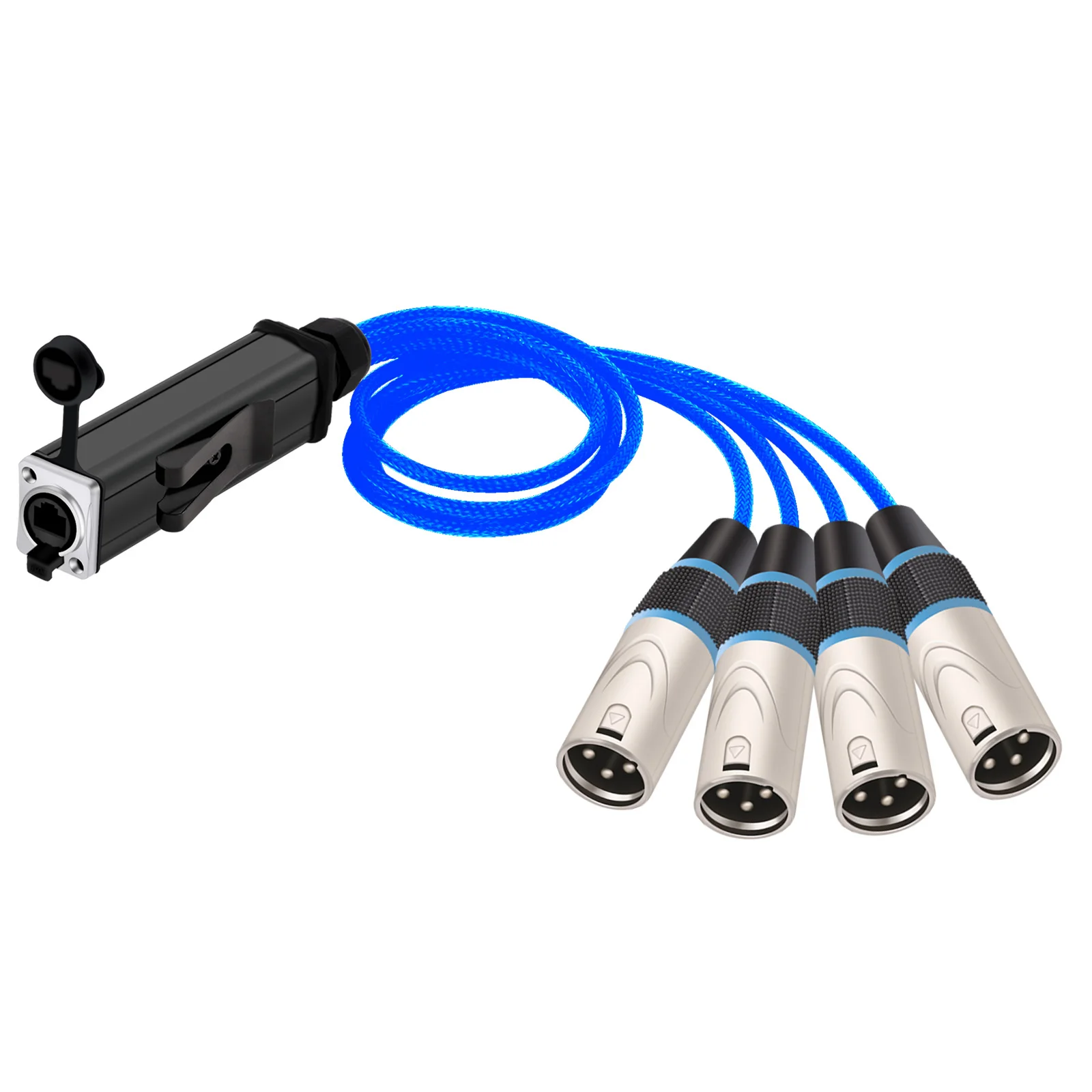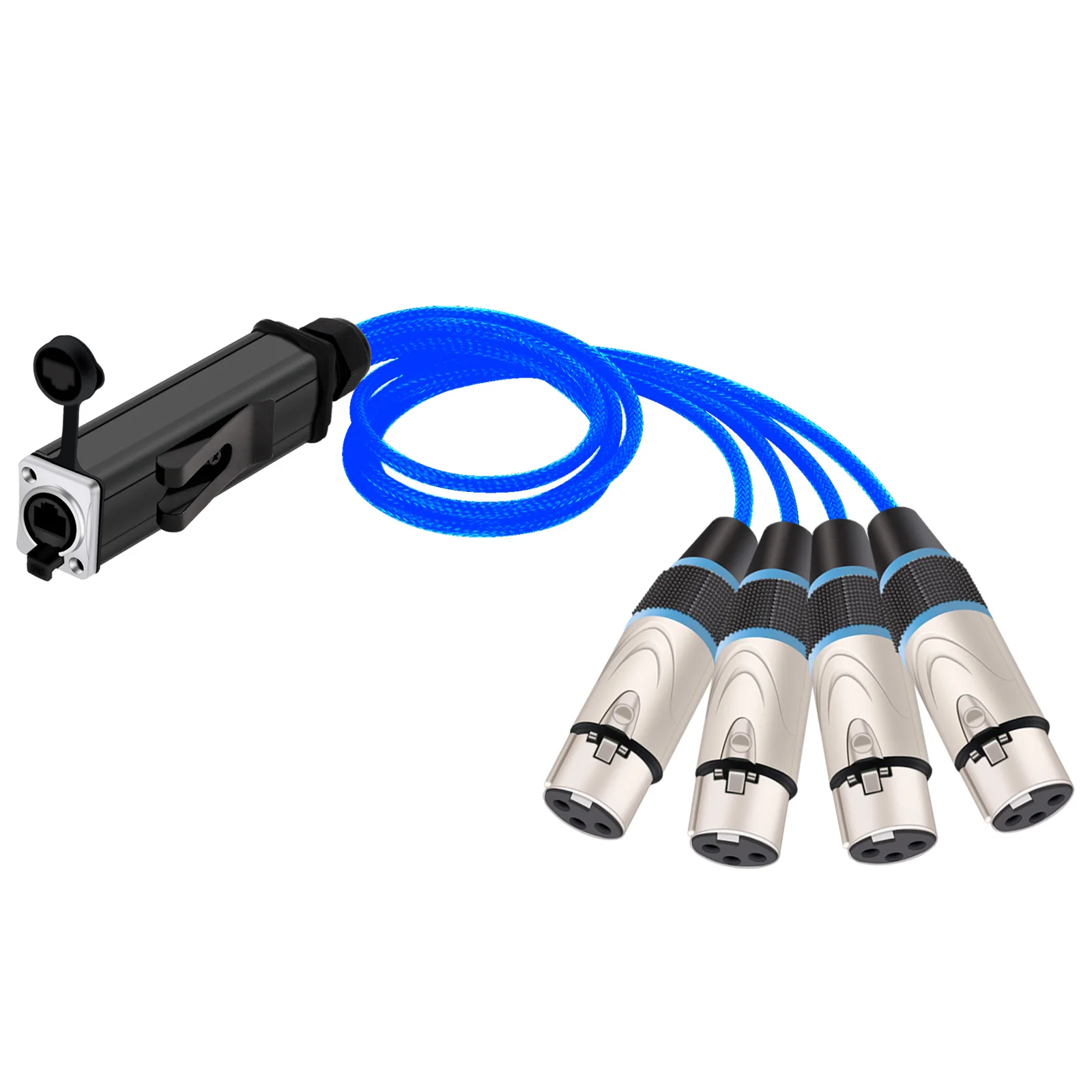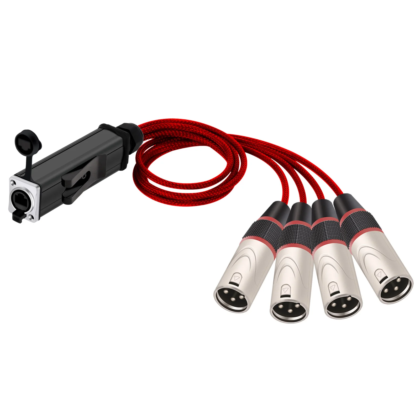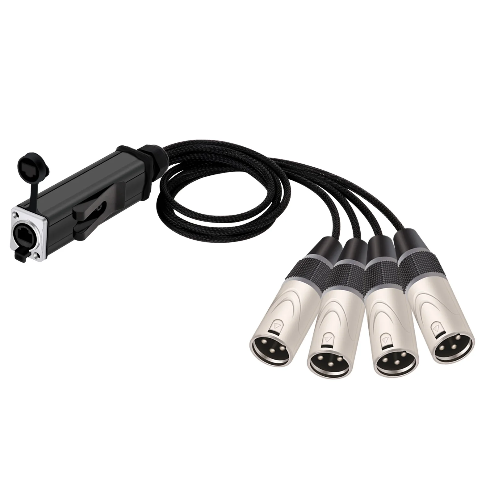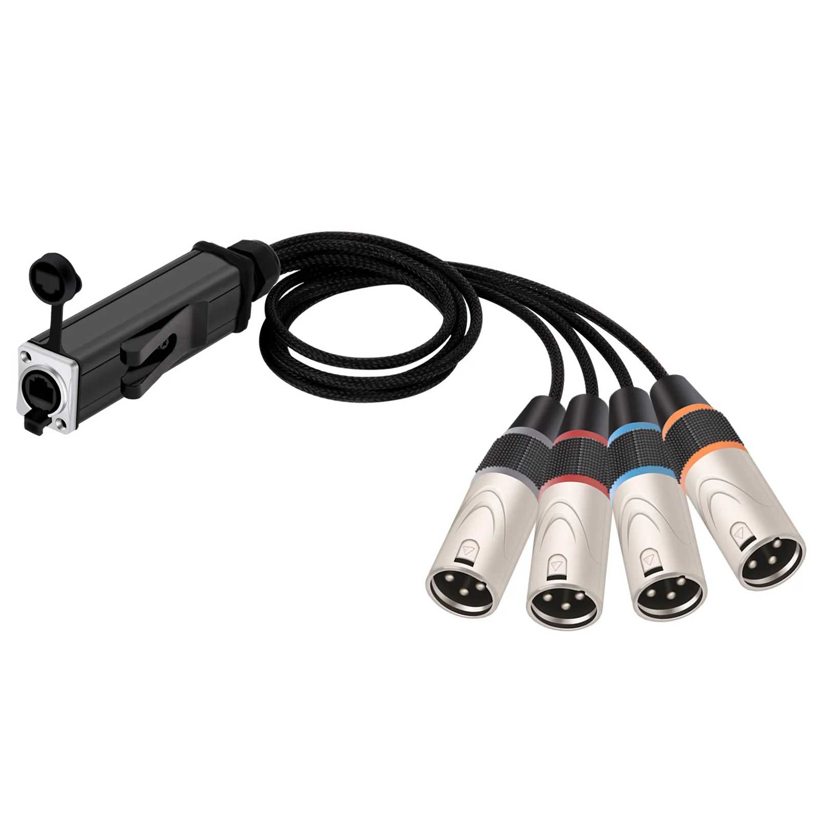 Experience professional-grade audio performance with this high-quality 4-channel XLR snake cable from Connector B. Designed for versatile and reliable sound transmission, this cable features a sleek black exterior with bright orange braided cables, blending durability with vibrant aesthetics. Its waterproof, rust-resistant RJ-45 female connectors and sturdy 3-pin XLR counterparts ensure secure, interference-free connections in both indoor and outdoor environments. With a length option from 0.5 meters to 10 meters, you can easily customize your setup. The flexible rubber coating, 33 AWG oxygen-free copper conductors, and braided shielding guarantee optimal signal clarity and longevity. Whether for live performances, studio recording, or multimedia setups, this cable enhances your audio experience with precision, strength, and style.
