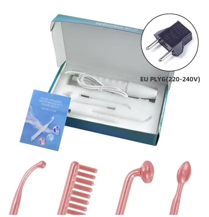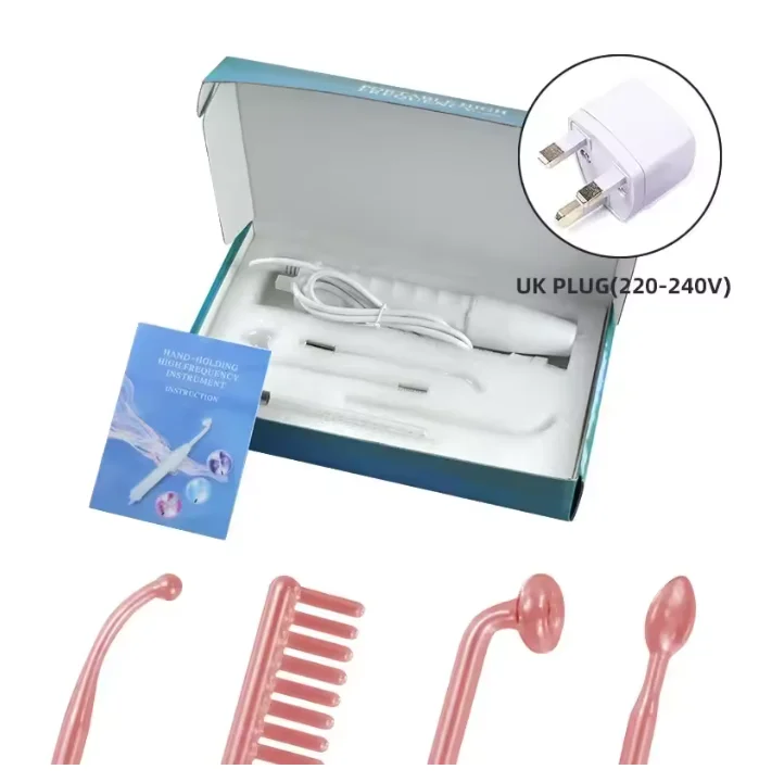 - Multiple interchangeable electrodes with metallic and glass tips support targeted facial treatments, including wrinkle smoothing and pore cleansing.