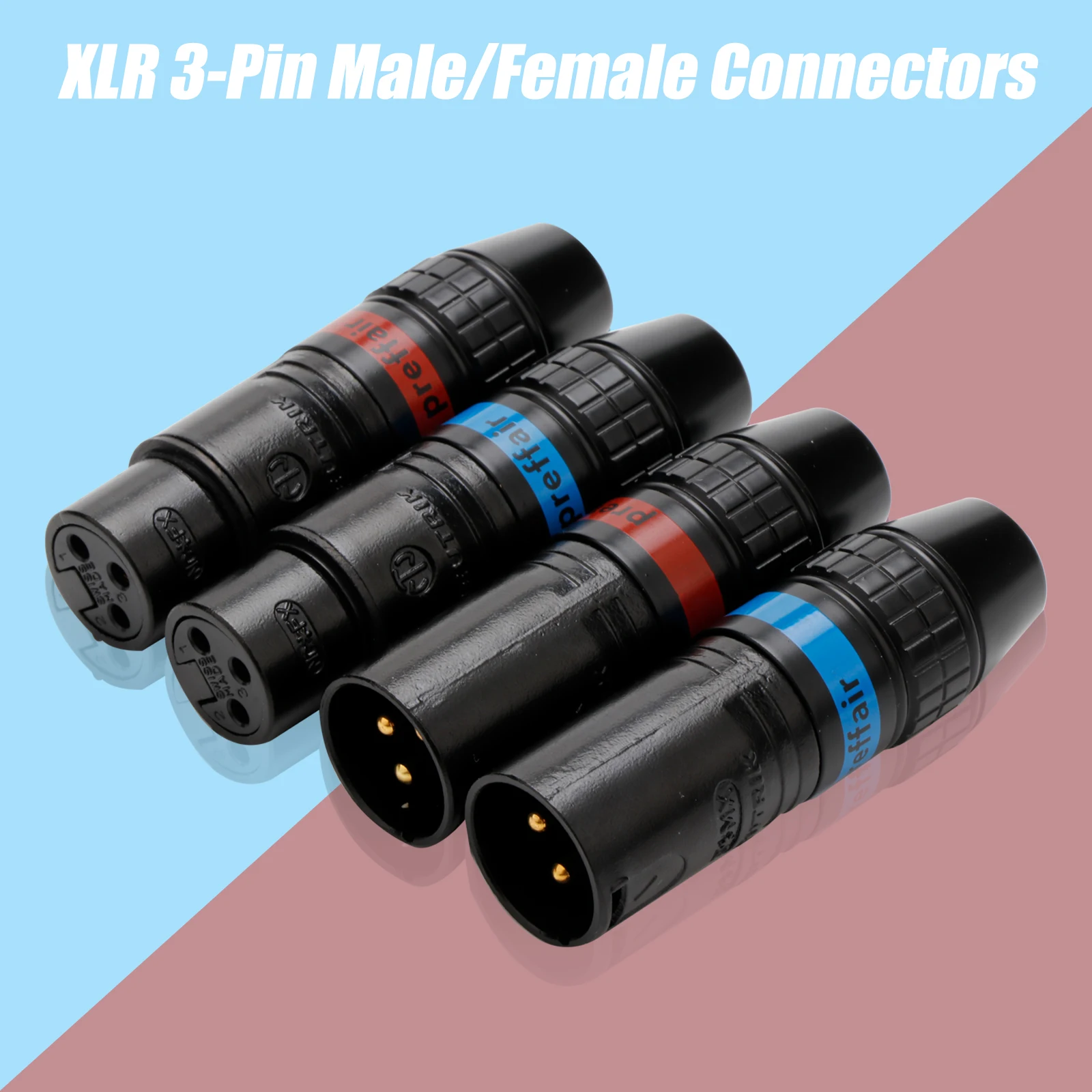 - This set includes four 3-pin gold-plated XLR connectors, perfect for professional audio and DIY microphone cable projects, providing excellent signal transmission and corrosion resistance for long-lasting use.