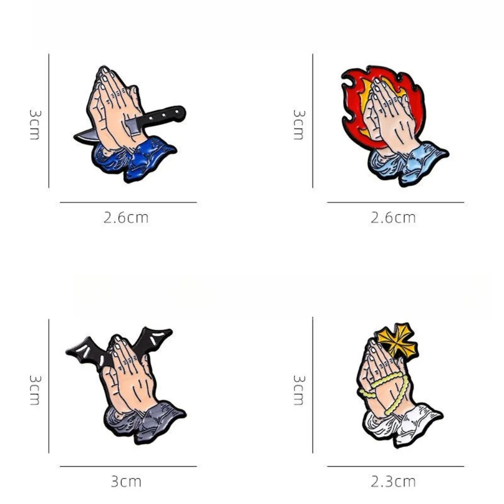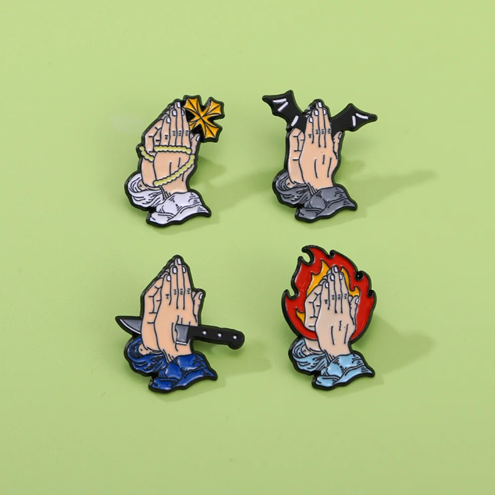 Unleash your unique style with this set of four creative enamel pins. Each design showcases a distinct interpretation of praying hands, allowing you to express your individuality. The vibrant colors and captivating elements—from flames to bats—are perfect accents for jackets, backpacks, and hats. Made from high-quality alloy, these pins embody retro, punk, gothic, and minimalist themes, making them suitable for anyone looking to elevate their fashion game. With their versatile applications, you can easily mix and match these pins to complement any outfit. Imagine sporting these eye-catching accessories that not only enhance your style but also spark conversations everywhere you go.