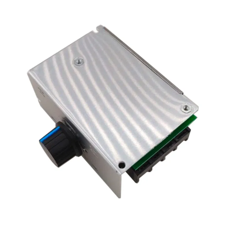 This high-performance 4000W AC voltage regulator combines robust durability with precise control, featuring an adjustable output from 0-220V AC and a minimum efficiency of 90%. Designed for reliable operation under load, it supports DC brush motors up to 20A and 600W, with adjustable speed control from 0% to 100%. The device includes a digital display for easy voltage regulation, supports input voltages from 6V to 60V, and currents up to 30A. Equipped with remote RF 12V 433MHz wireless control modules, it allows seamless operation in industrial or automation settings. Its sturdy, compact metal construction with ventilation holes emphasizes both function and resilience, making it ideal for sophisticated motor speed regulation needs.