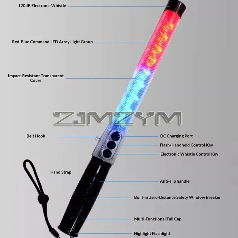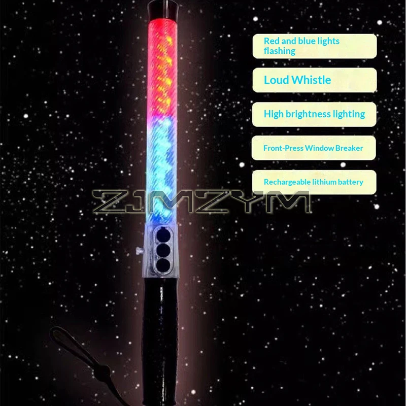 Imagine confidently guiding traffic or signaling in low-light conditions with this sleek, modern LED traffic wand. Crafted from durable, transparent polycarbonate, it measures approximately 40 centimeters in length, making it easy to handle and highly visible. The wand features vibrant, flashing LED lights in striking red and blue colors, arranged in swirling or zigzagging patterns that create a dynamic glow. The lights shift colors along the length, ensuring maximum visibility at night or in poor weather. A black end cap houses the power button, while a small attachment loop allows secure handling or wrist strap attachment. Its contemporary design makes it ideal for outdoor night safety and traffic management, providing clarity and assurance wherever you need it most.