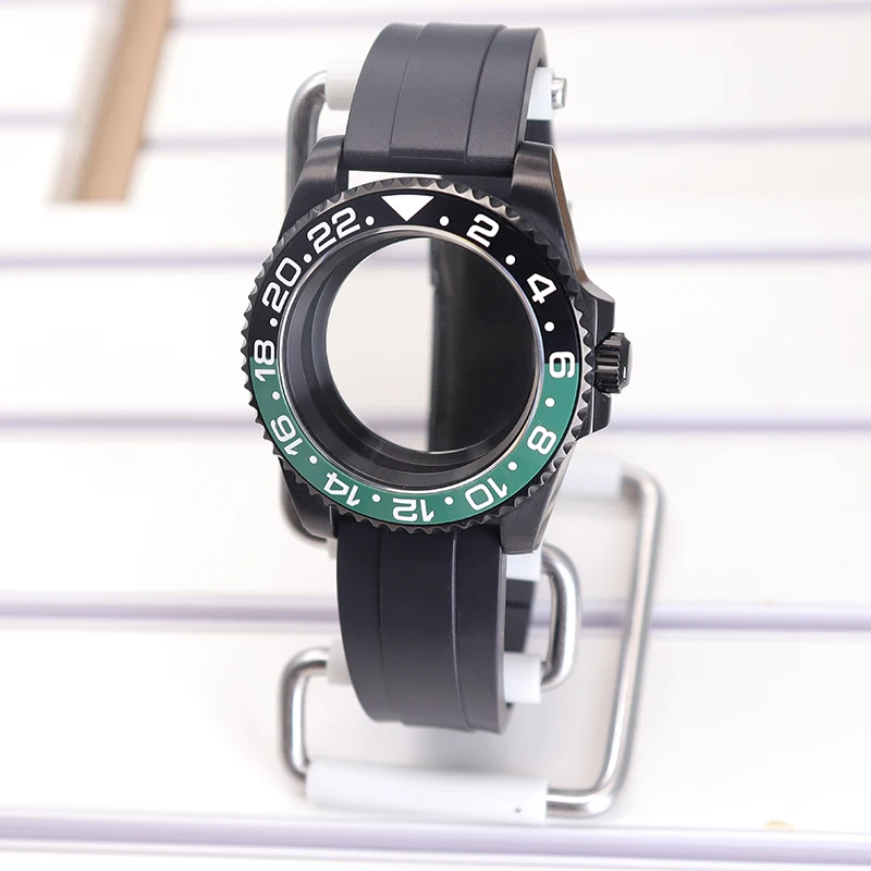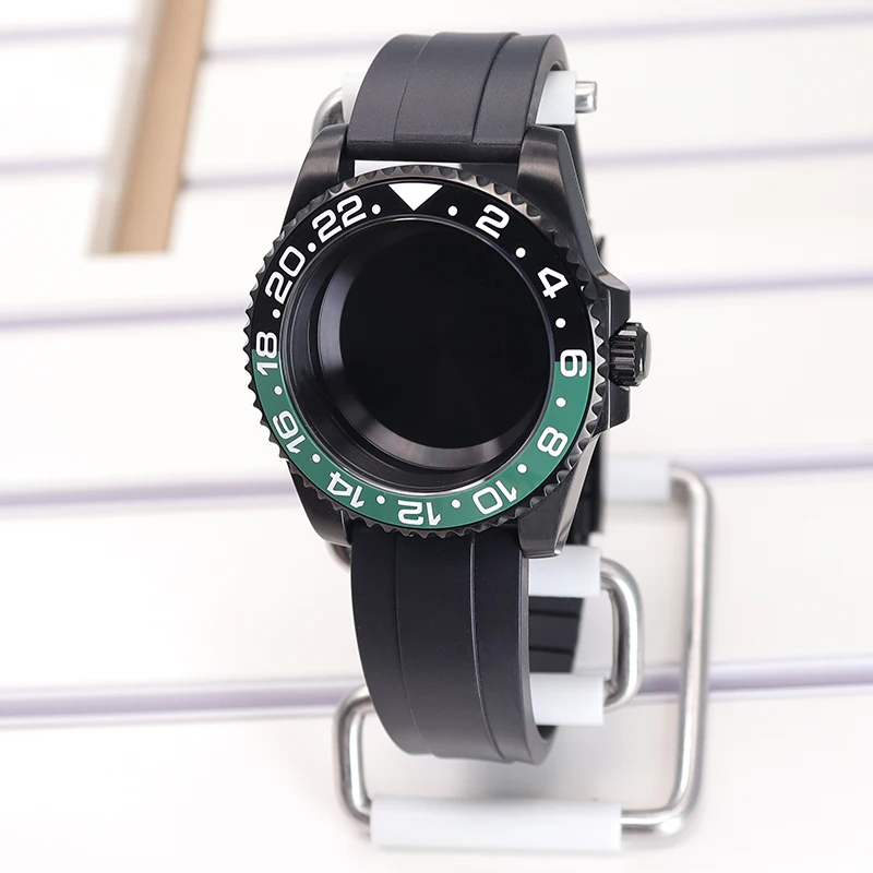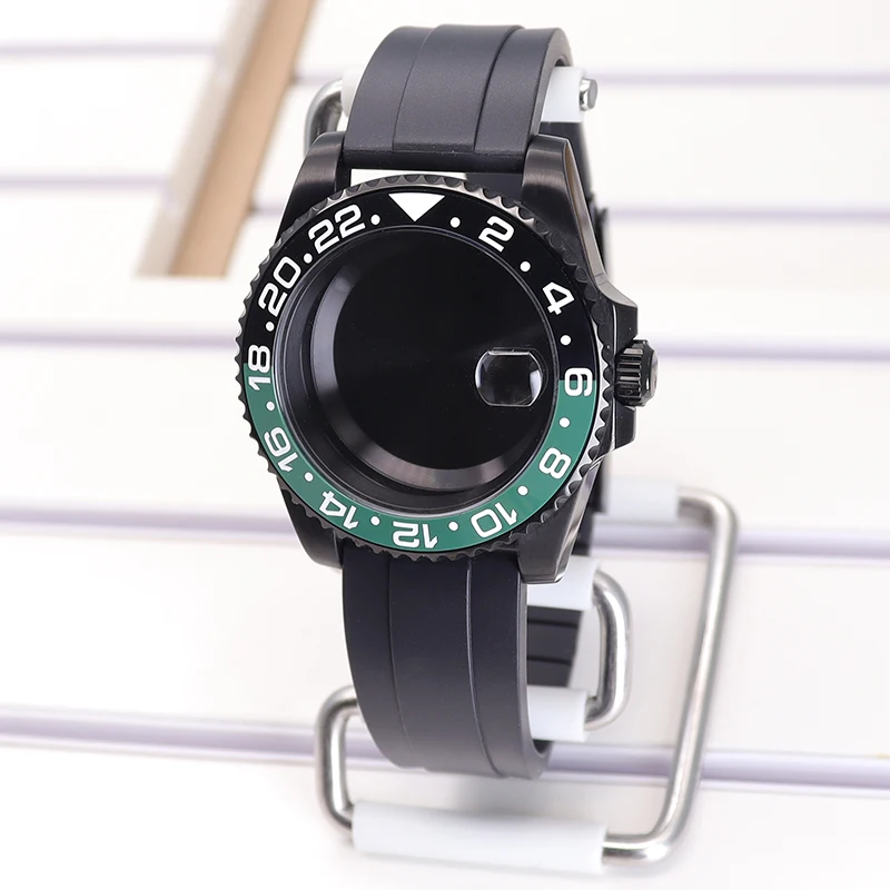 Experience the ultimate in durability and style with this 40mm black stainless steel watch case designed for versatile customization. Crafted from premium 316L stainless steel with a sleek black finish, it combines robustness with modern aesthetics. The sapphire crystal glass ensures exceptional scratch resistance and clarity, while the 100-meter water resistance allows active use in various environments. Compatible with popular movements like NH34, NH35, NH36, NH38, Miyota 8215, and ETA 2824, it comfortably fits 28.5mm dials for a perfect fit. The case features a screw-in crown for enhanced water resistance, broad 20mm rubber straps, and the option for a transparent or solid case cover. This set includes all necessary components for a seamless assembly, making it ideal for crafting your custom timepiece.