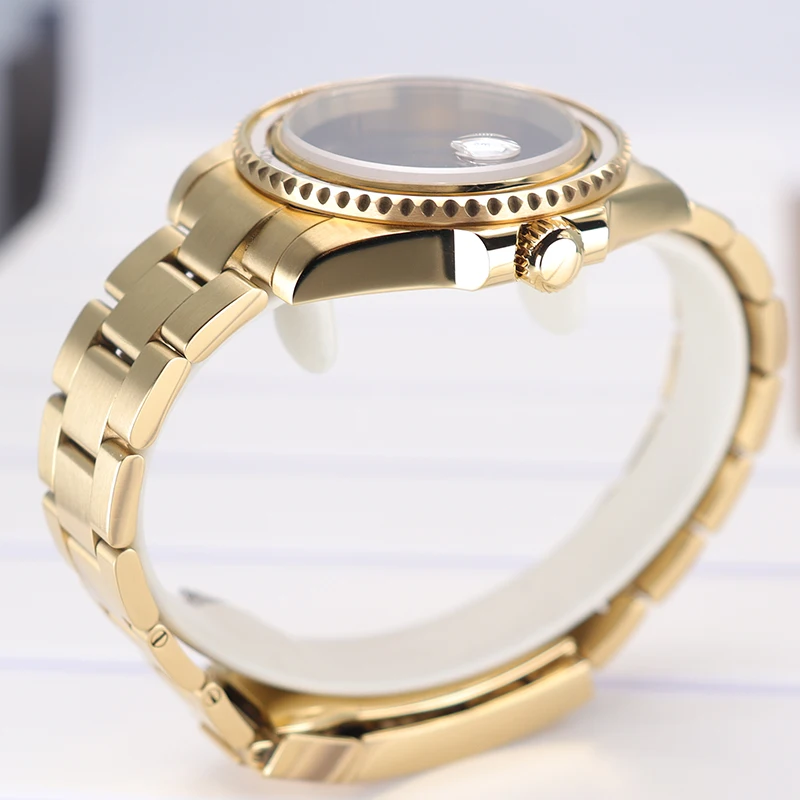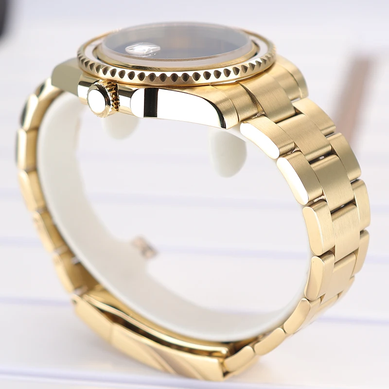Experience timeless sophistication with this high-quality 40mm gold stainless steel watch case. Crafted from durable 316L stainless steel, it features a sleek, round silhouette complemented by a textured, serrated bezel for an industrial touch. The case has a thickness of 13.5mm and a 28.5mm dial opening, perfect for creating a refined and customizable watch. With a sapphire crystal glass opening, it offers excellent transparency and scratch resistance, showcasing your preferred dial design. Designed for versatility, it accommodates various movements such as NH34, NH35, NH36, NH38, ETA 2824, and Miyota 8215. Its waterproof depth of 100 meters makes it suitable for everyday wear and aquatic activities, delivering both style and functionality in one elegant package.