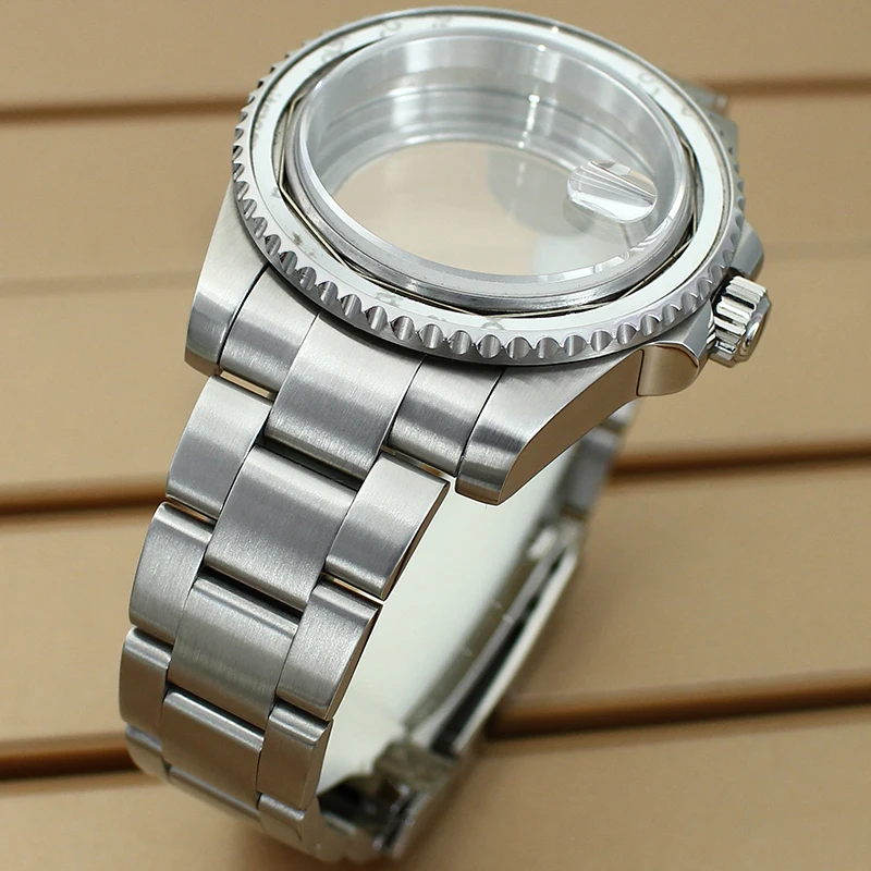 Enhance your watch collection with this 40mm silver diver’s watch case made from solid 316L stainless steel featuring a polished, mirror-like finish. It includes a textured, ridged bezel, scratch-resistant sapphire crystal glass, and a screw-down crown, offering water resistance up to 200 meters. Compatible with movements such as ETA 2824, Miyota 8205/8215, NH34, NH35, NH36, NH38, and 4R36, supporting dial sizes from 28.5mm to 28.9mm. Designed for versatility, it supports transparent or solid case backs, a 38mm ceramic outer bezel, and a 20mm stainless steel bracelet with spring bars and slide buckle, combining durability with refined style.