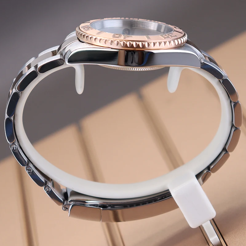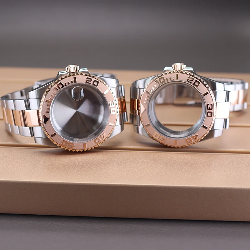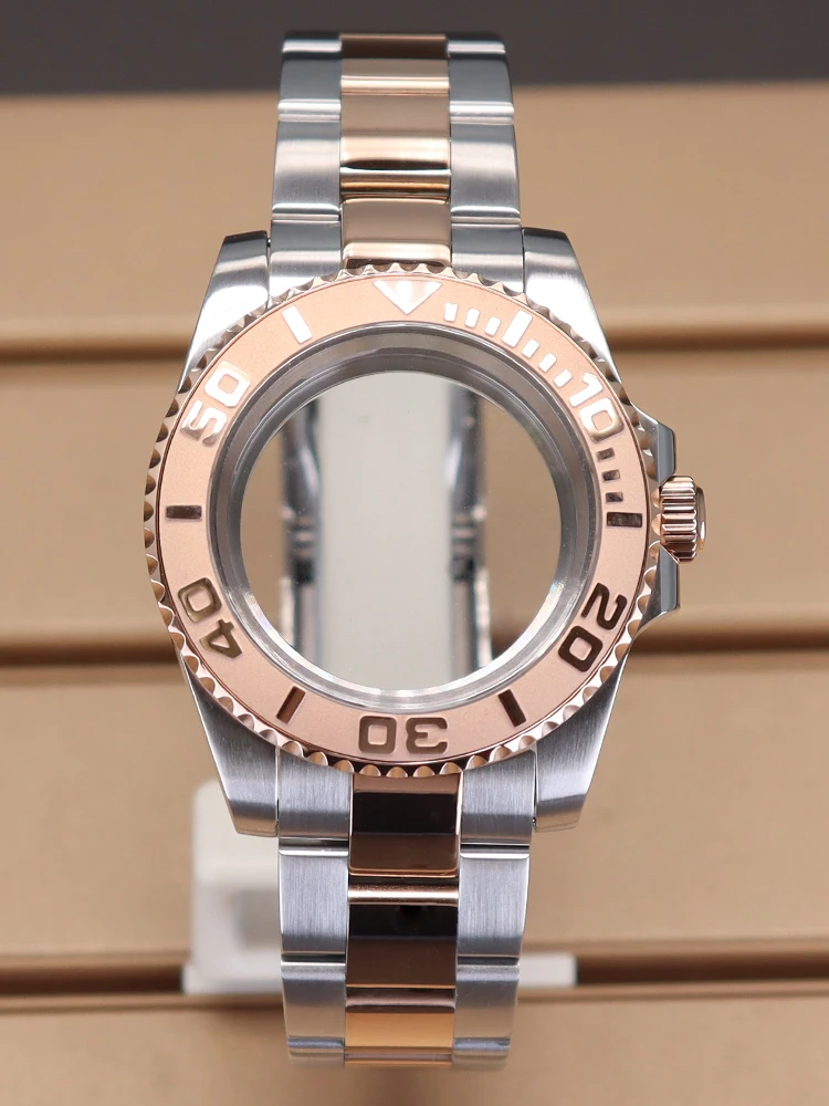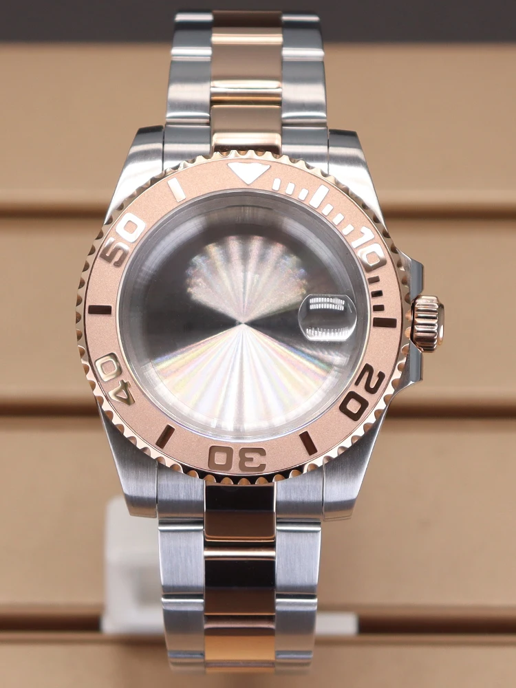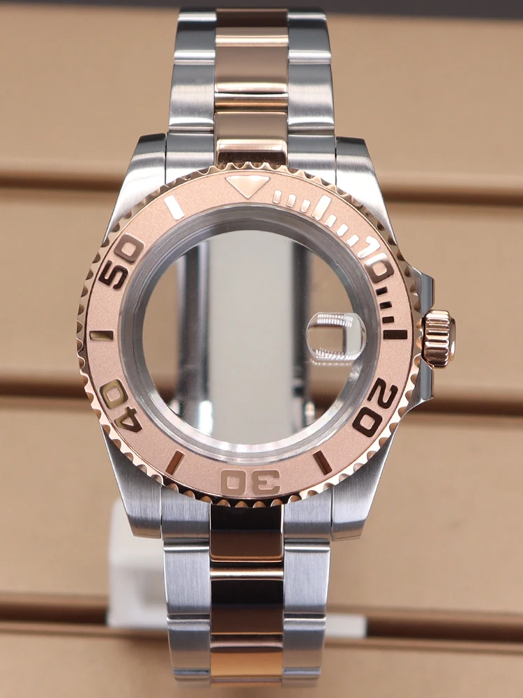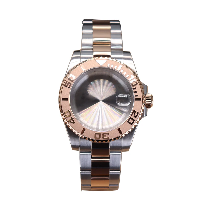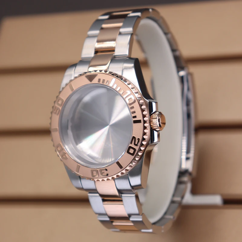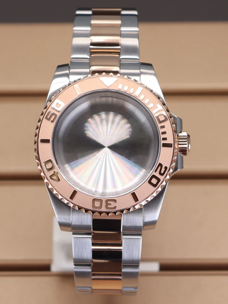 Discover the perfect foundation for your timepiece with this high-quality 40mm stainless steel case. Crafted from durable 316L stainless steel, it boasts a sleek silver and rose gold finish, blending luxury with everyday practicality. The polished surface reflects light beautifully, highlighting its refined design. Its slightly thicker profile of 13.2mm adds a substantial, robust feel, while the 20mm band width ensures compatibility with various straps. Designed to house dials from 28.5mm to 30.5mm, it fits a range of popular movements like NH35, NH36, NH34, NH38, 4R36, Miyota 8215, Miyota 8205, ETA 2824, or PT5000. Its sapphire crystal glass offers excellent clarity and waterproofing up to 100 meters, making it suitable for aquatic adventures. This case set ensures durability and style for your custom watch.