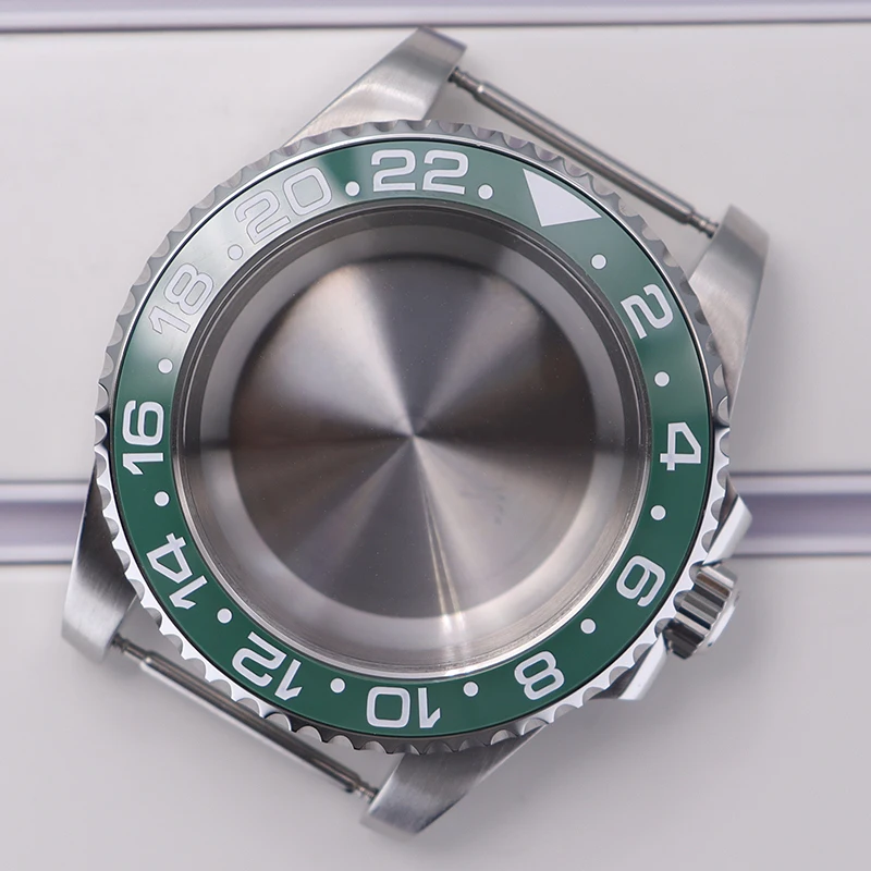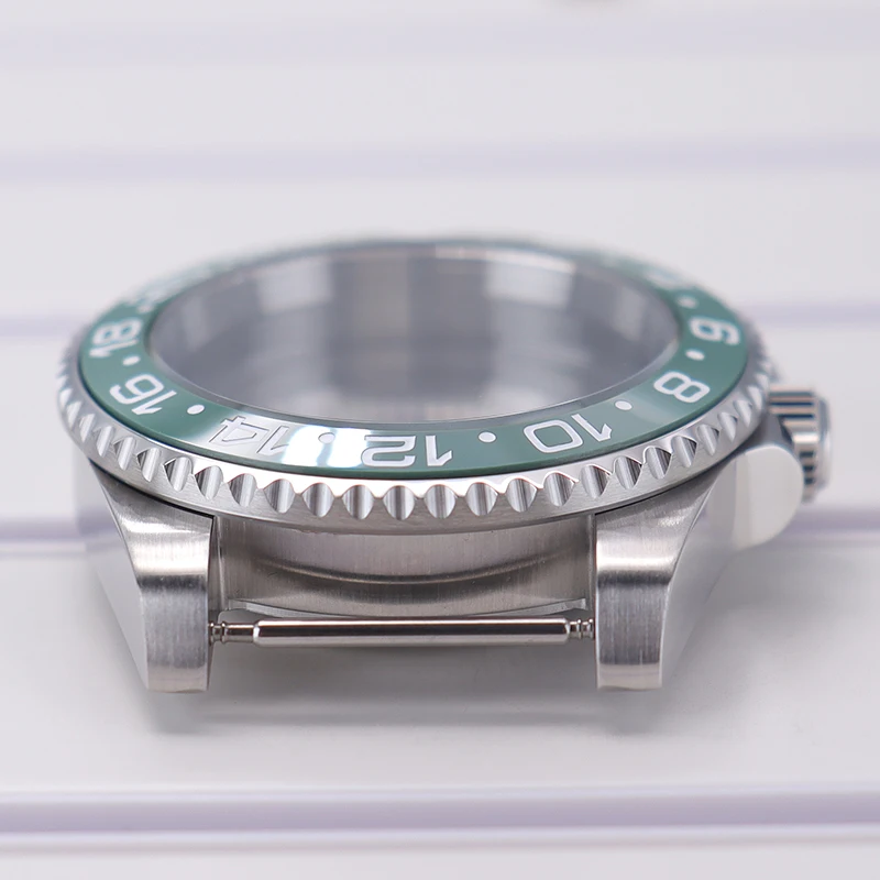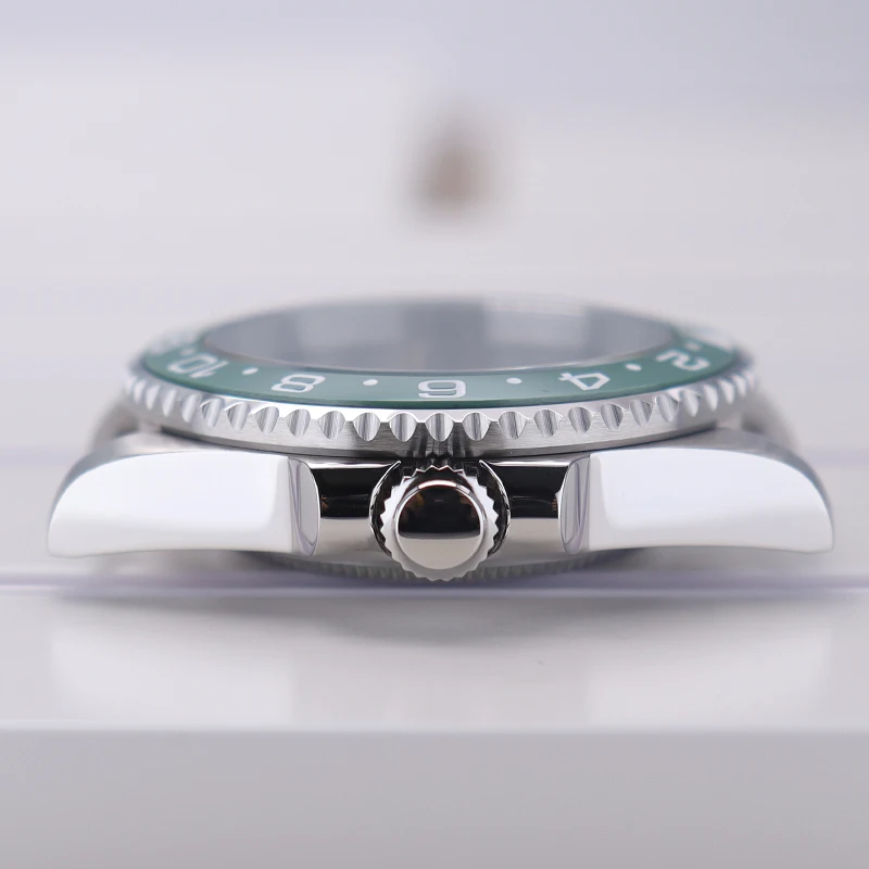 Experience timeless elegance with this premium 40mm stainless steel watch case. Crafted from durable, polished 316L stainless steel, it features a sleek, silvery finish that complements any style. The case boasts a modern, minimalist design with smooth, tapered lugs and a robust build. Its sapphire crystal glass ensures superior scratch resistance and water resistance up to 200 meters, perfect for active lifestyles. The bold, ceramic bezel is available in various colors such as rose gold, blue, black, gold, and green, adding a customizable touch to your wrist. Designed with meticulous attention to detail, this case combines style, strength, and versatility for a perfect fit for your preferred movement and dial size.
