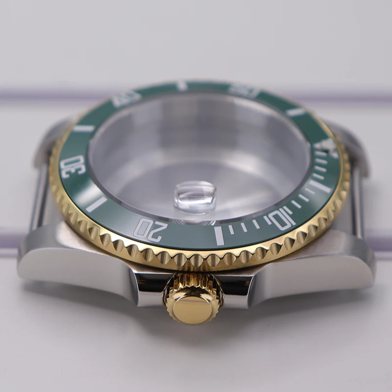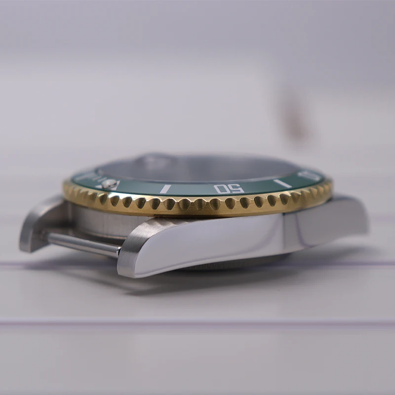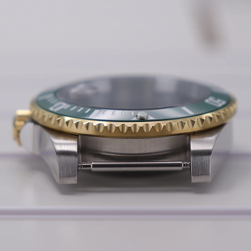 Experience the perfect blend of durability and elegance with this 40mm watch case crafted from solid 316L stainless steel. Its sleek, brushed metallic finish is accented by the luxurious gold-tone bezel and crown, creating an eye-catching contrast that elevates any wrist. The case’s well-designed dimensions—13.2mm thick—fit comfortably and provide a refined silhouette. Protected by a highly scratch-resistant sapphire crystal glass, it offers exceptional clarity and durability, even under demanding conditions. With waterproofing up to 100 meters, this case is ideal for adventurous men who want style and function. It accommodates a variety of Swiss and Japanese movements, making it flexible for custom builds or replacements. Compact yet robust, this case is your gateway to a sophisticated, high-performance wristwatch.