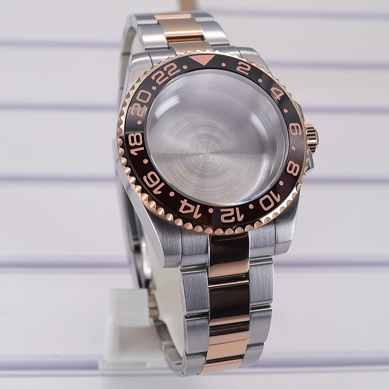 This luxury 40mm watch case is crafted from solid 316L stainless steel, designed to complement your NH35, NH36, NH34, NH38, or Miyota 8215 movements. The exquisite silver and rose gold finish adds a touch of elegance, while the sapphire glass provides superior scratch resistance. This timepiece allows you to effortlessly elevate your watch collection, ensuring you feel proud every time you wear it. The unidirectional rotating bezel and 200m waterproof depth make it not only a stylish choice but also a functional one for everyday wear and aquatic adventures. Experience the perfect blend of sophistication and durability with this must-have watch accessory.
