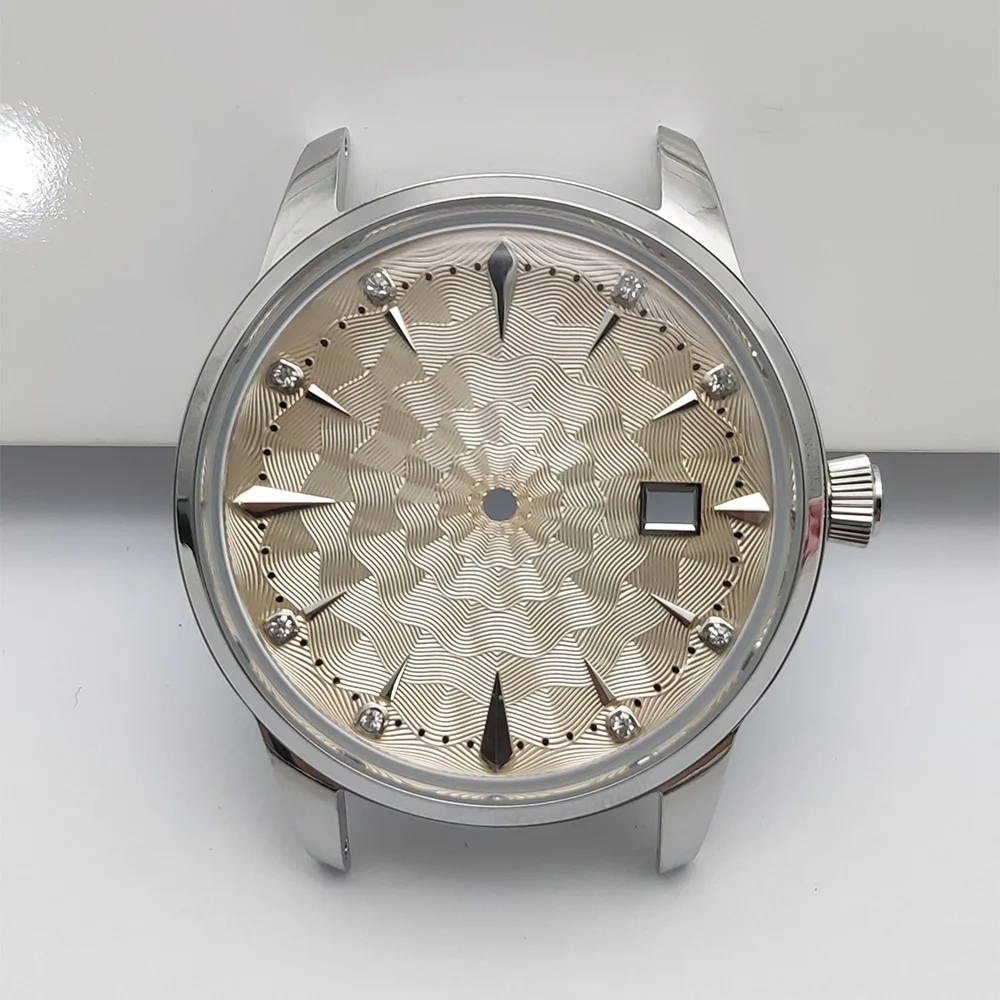 Elevate your collection with this elegant 40mm stainless steel watch case, featuring a sleek 14mm thickness and a 35mm diamond-scale dial that radiates sophistication. The round bezel, polished to perfection, complements the textured wave pattern on the dial, available in striking colors like black, mint green, champagne beige, and vibrant blue. Designed for compatibility with NH35, NH36, NH4R, and NH38 movements, it includes a 20mm strap interface for versatile customization. With a waterproof rating of 5ATM, this watch case delivers both style and durability, ideal for creating a refined, modern timepiece that commands attention and expresses your unique taste.