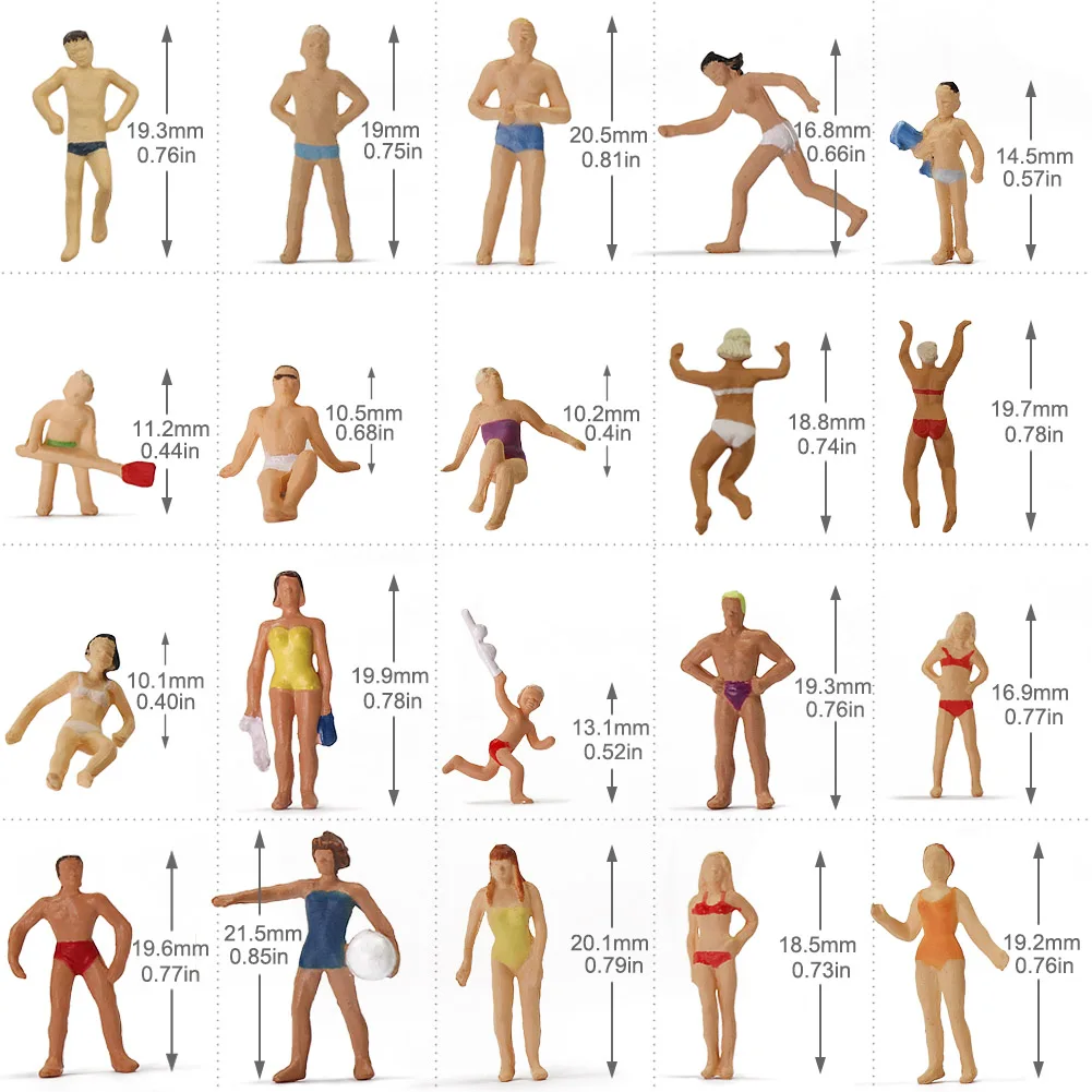 - Includes 40 different miniatures, each carefully painted to depict beach or poolside activities, enhancing realism in your model scenes with lively and diverse poses.