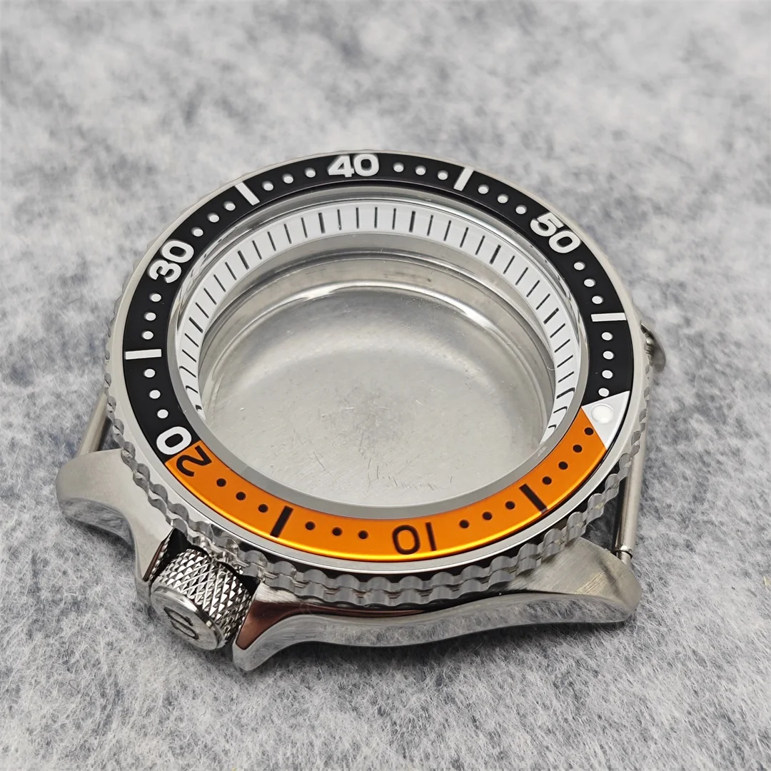 Experience the perfect blend of durability and sleek design with this 41.5mm SKX watch case, crafted from high-quality 316L stainless steel. Its polished finish provides a refined look, while the prominent lugs ensure secure strap attachment for a comfortable fit. The white chapter ring with inner shadow adds a touch of elegance, complementing the diver-inspired bezel with vibrant black, orange, blue, or monochrome options, each featuring bold white markings for high contrast. Designed for rugged use, this case accommodates 28.5mm dials and is equipped with a mineral glass lens for crystal-clear visibility. Whether upgrading your existing watch or building a custom model, this case offers excellent flexibility and style to suit your preferences.