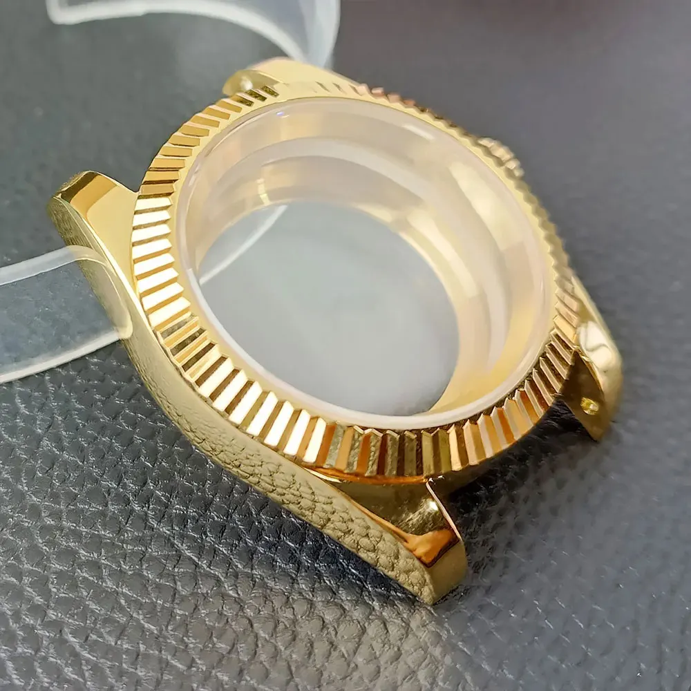 Create your perfect timepiece with this exquisite collection of 41mm watch cases, designed for customization and elegance. Crafted from durable stainless steel, each case features a polished or matte finish to suit your unique style. The collection includes options in gold, rosegold, silvery, and black, with some featuring transparent windows to showcase the movement. The cases are equipped with high-quality sapphire glass, providing excellent protection and clarity. With a height of 12.5mm and a strap width of 20mm, these cases are compatible with movements like NH34, NH35, NH36, NH38, NH70, and NH72, and fit dials approximately 28.5 to 29mm. Their refined design makes customizing your watch effortless and satisfying.