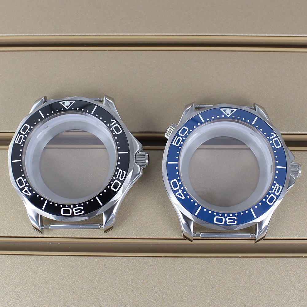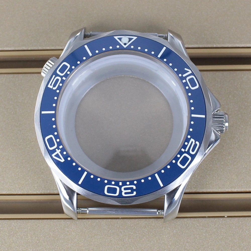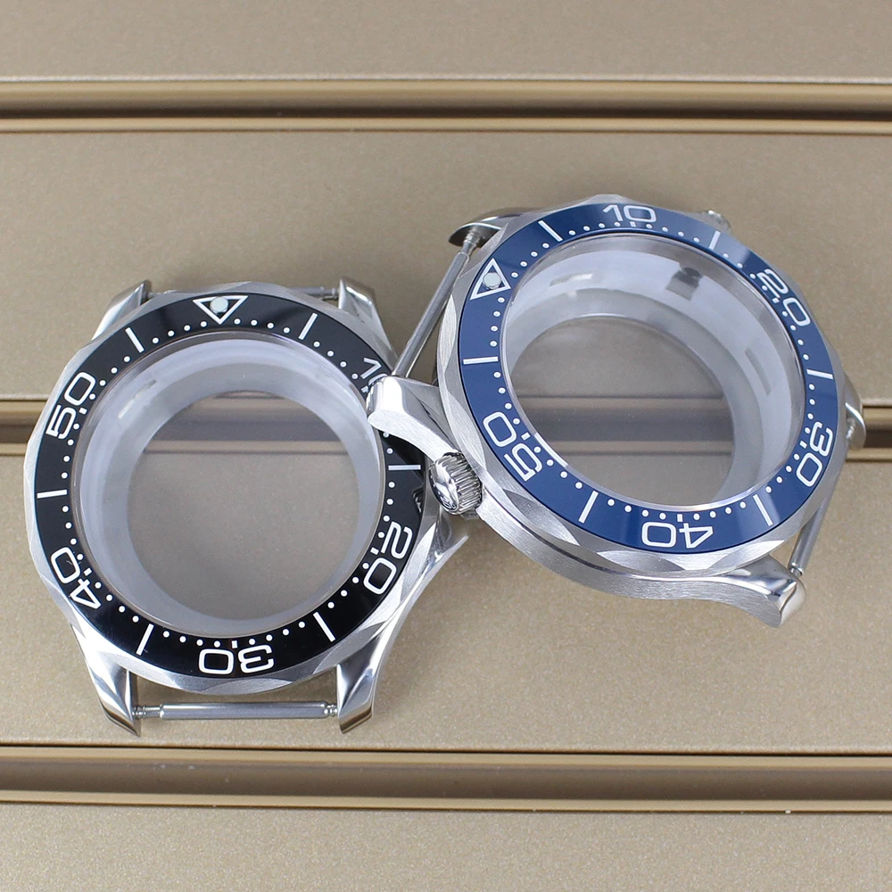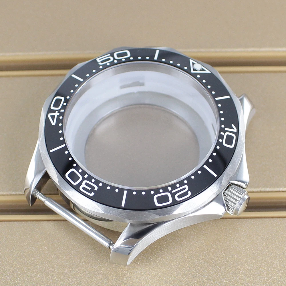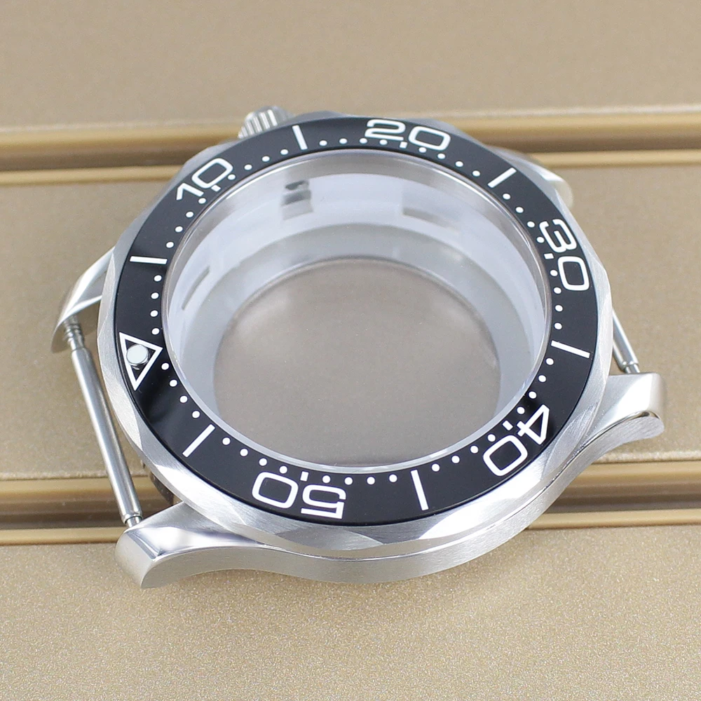 Imagine wearing a refined, professional-grade dive watch that combines durability and elegance. This 41mm stainless steel case offers a sleek, silvery finish and is expertly crafted with a thickness of 13.65mm. Its design emphasizes robustness with angular, short lugs that extend outward, perfect for attaching your preferred strap. The high-quality sapphire crystal ensures excellent clarity and scratch resistance, while the ceramic bezel features easy-to-read white markings at 10, 20, 30, 40, and 50-minute intervals. Water-resistant up to 100 meters, this case is made for serious divers or those who want a reliable, stylish accessory. Its versatile design and multiple color options allow you to customize your perfect look, making this an essential component for your next watch build.
