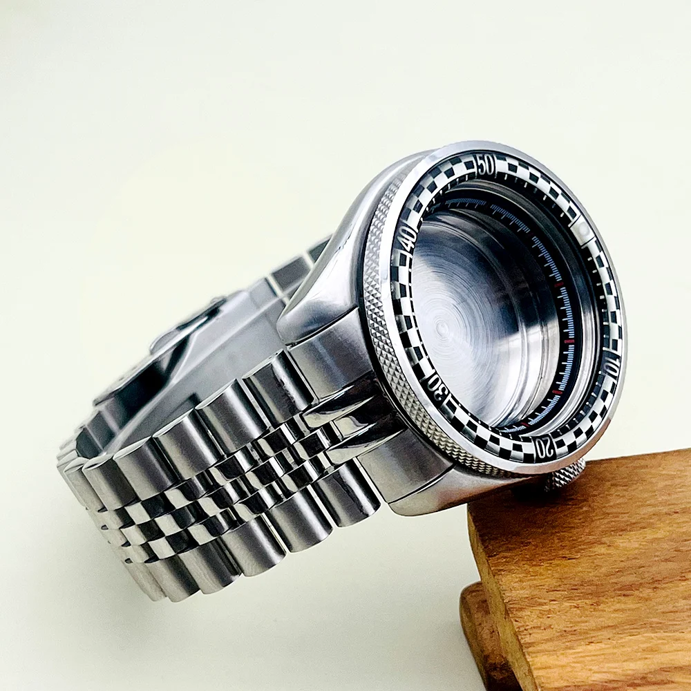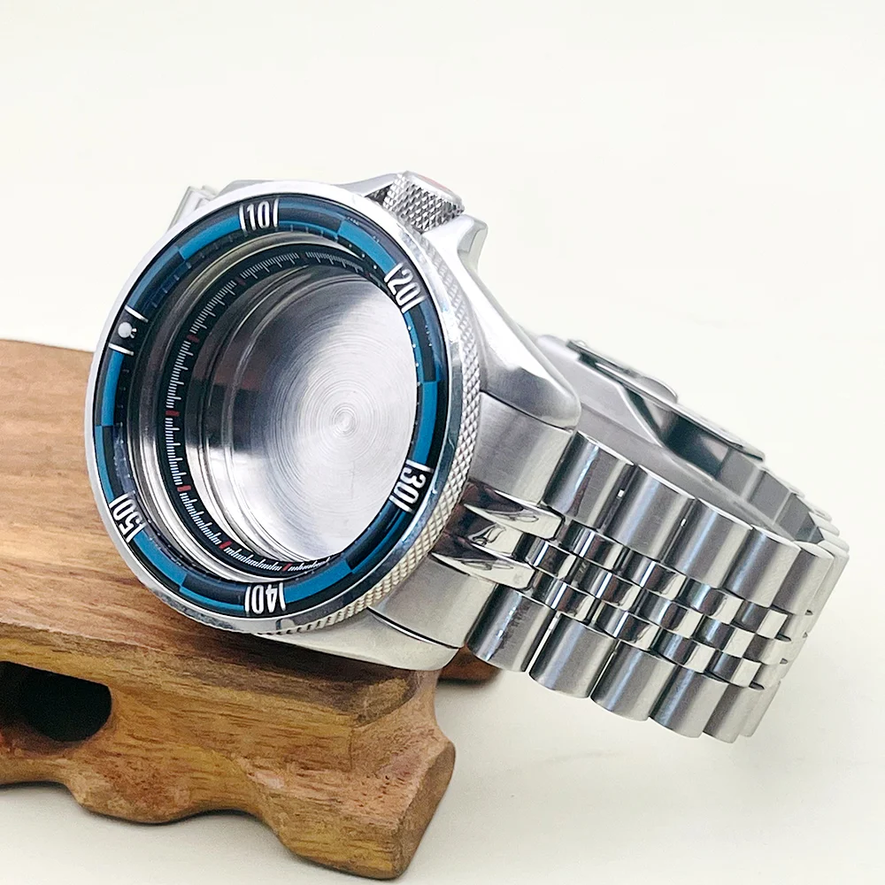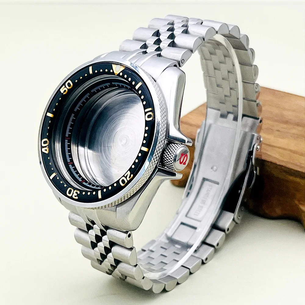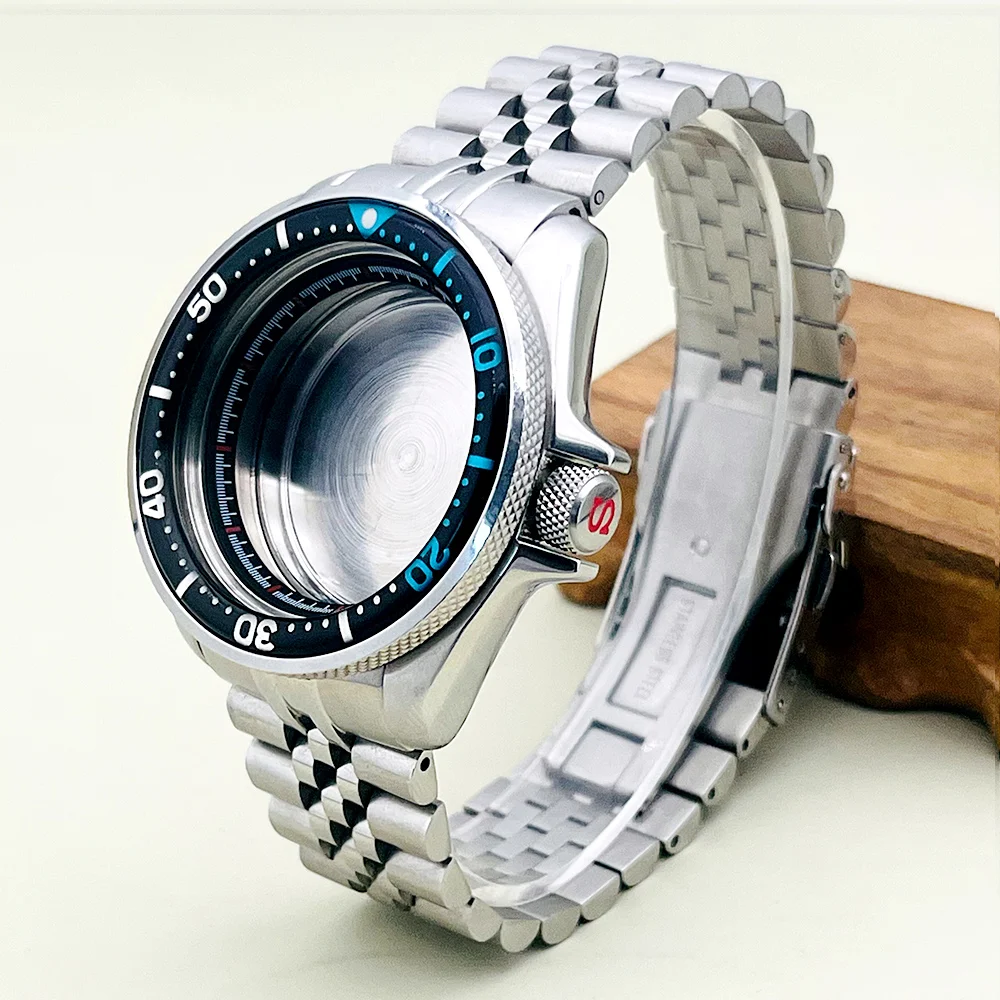 This stainless steel watch case, measuring 41mm in diameter and 13.5mm thick with a 46mm lug-to-lug length, offers a sleek, modern design with a polished finish. Crafted from durable 316L stainless steel, it features a flat sapphire crystal glass, a sealed waterproof back cover, and a screw-in lock crown at 3 o’clock. The bezel insert dimensions are 38mm by 31.5mm, and it is compatible with 28.5mm dials, supporting Japan automatic movements such as NH34, NH35, NH36, 4R35, and 4R36. Water-resistant up to 10 ATM, it is ideal for hand washing and swimming. The 22mm strap width is designed for a deployment folding clasp for secure wear.