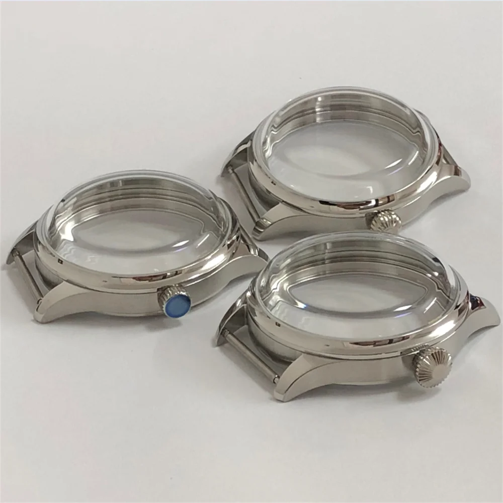 Experience the elegance and durability of this meticulously crafted 41mm watch case, made from premium 316L stainless steel. Its sleek design features a brushed matte finish on the case body, contrasting beautifully with a shiny, polished bezel that adds a refined touch. The generously domed mineral crystal with a blue anti-reflective coating offers clarity and reduces glare, elevating the overall aesthetic. Perfectly suited for mechanical movements like ETA6497/6498 and ST3600/3621, this watch case combines ruggedness with style. Its modern, minimalist design makes it an ideal choice for watch enthusiasts seeking a durable and sophisticated component for their custom timepieces. Imagine your unique watch coming to life with this stunning high-quality case, adding value and timeless appeal.