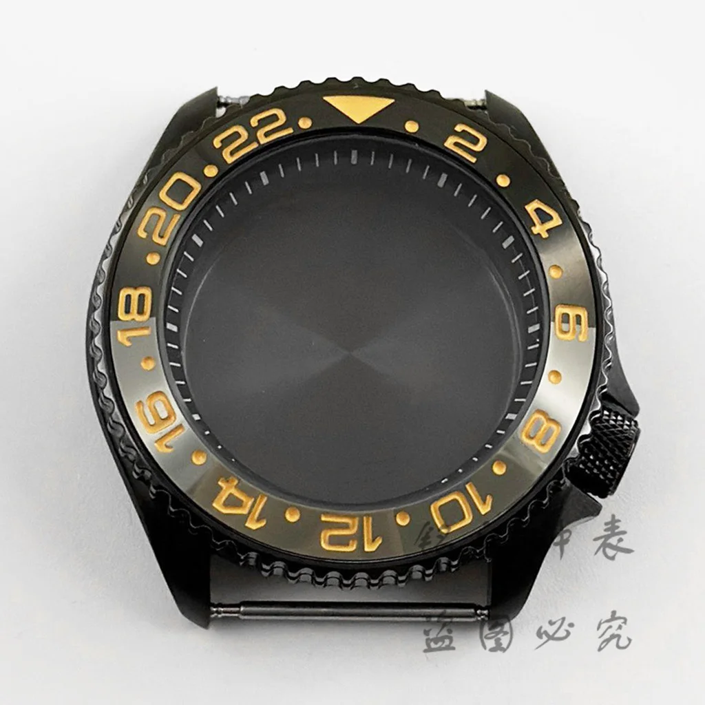 Experience the elegance and functionality of this 42mm PVD Black Ring Watch Case, specifically designed for NH34, NH35, NH36, NH38, NH70, and NH72 movements. Crafted from high-quality 316L solid stainless steel, this case boasts a unidirectional rotating bezel and a sturdy screw-in crown, ensuring durability and style. The arched mineral glass crystal not only enhances visibility but also adds a touch of sophistication. With a robust water resistance of up to 50m, this watch case is perfect for everyday adventures. Picture yourself assembling your ideal watch with this exquisite case that is the perfect blend of classic aesthetics and modern performance.