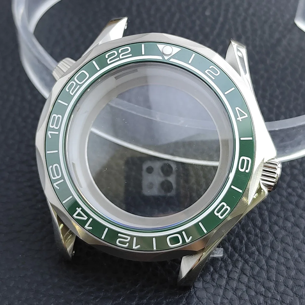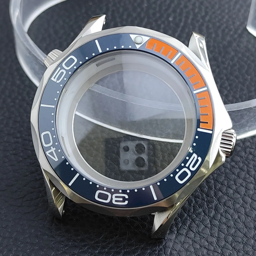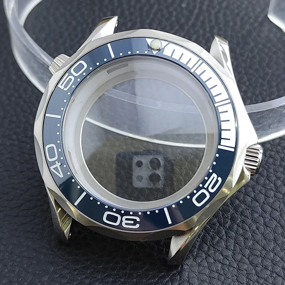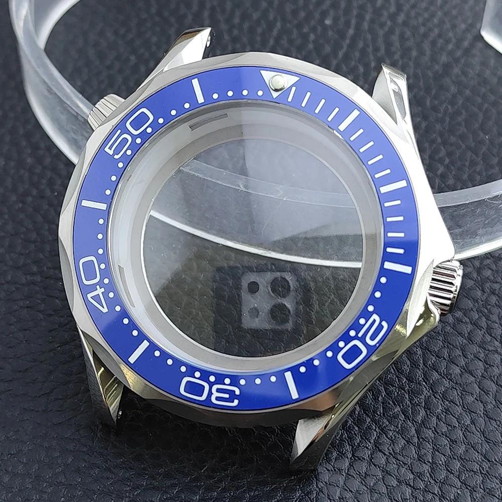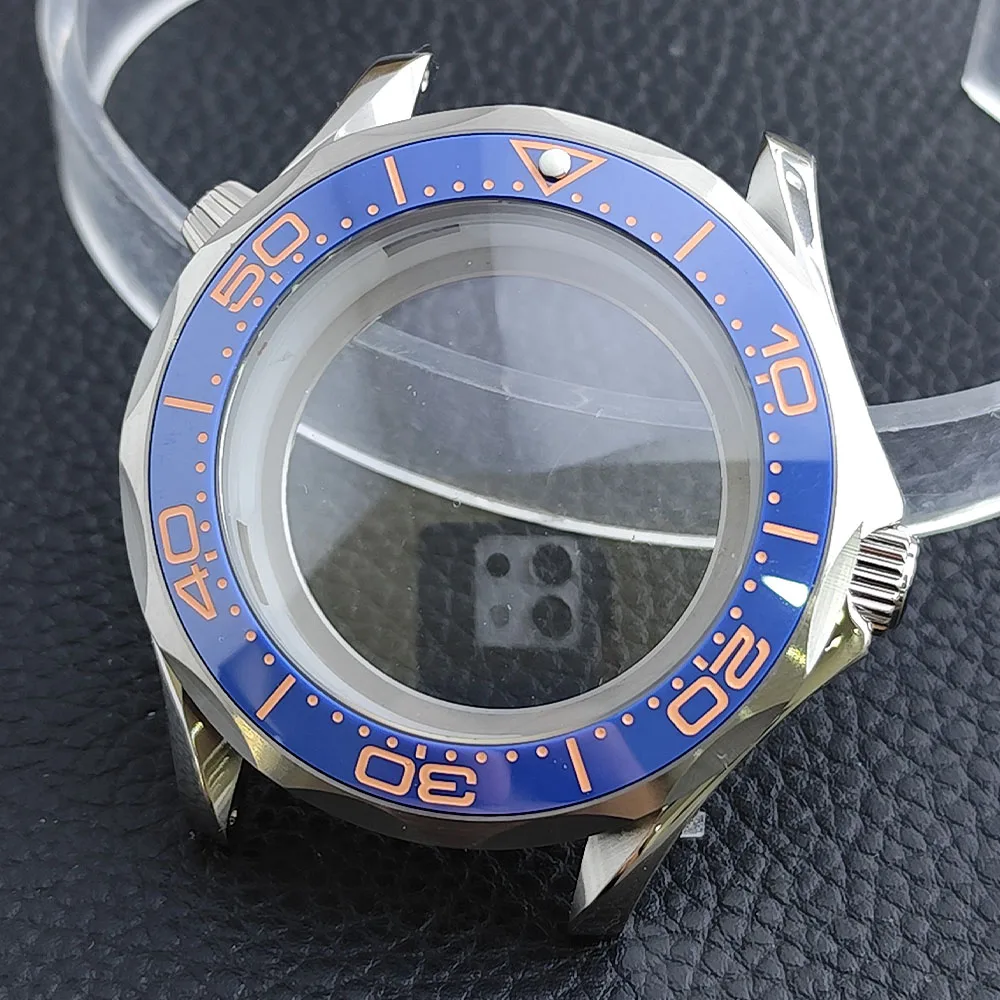 Embrace the sophisticated design of this 42mm watch case, expertly crafted to accommodate your NH34/NH35 movement. Made from durable stainless steel, this timepiece promises longevity and style. The striking deep blue bezel, adorned with white markings, enhances readability while adding a sporty flair. The convex sapphire glass offers clarity and scratch resistance, ensuring your watch remains pristine. Notably, the prominent crown protectors enhance its robustness, and the elegant finishes give it a modern appeal. Visualize yourself wearing this stunning component, expertly fitting your unique style and functionality needs.
