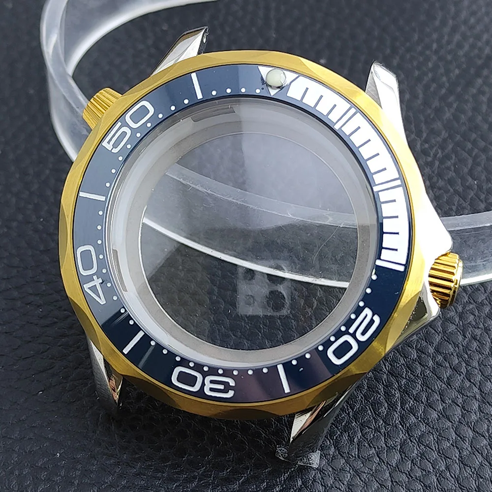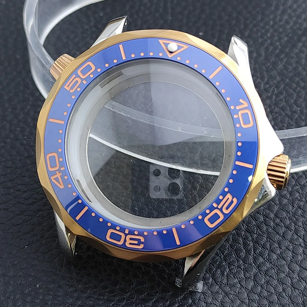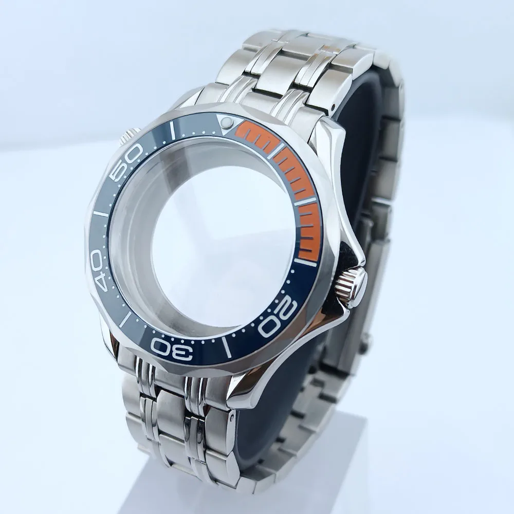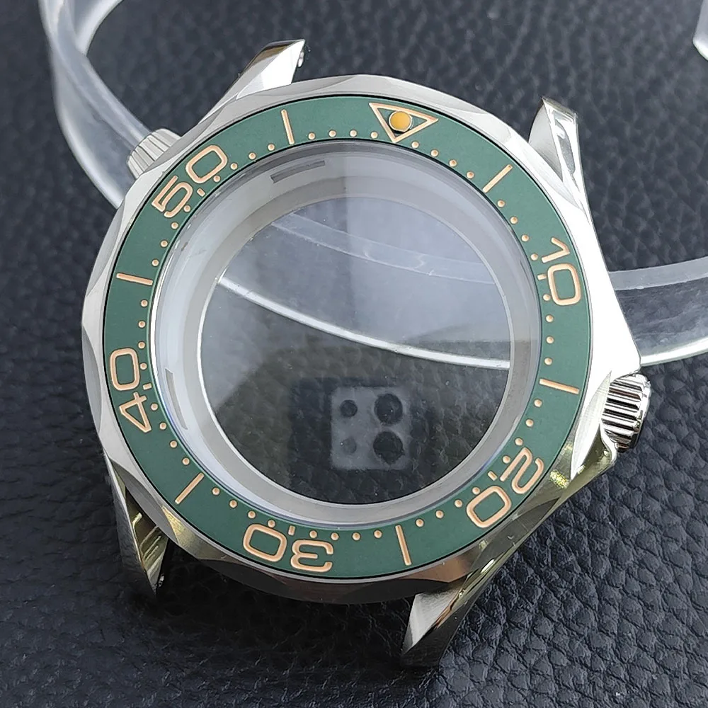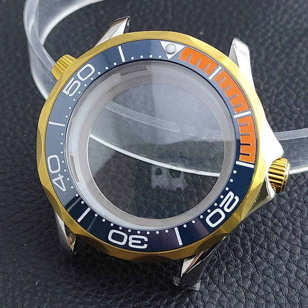 Embrace the sophisticated design of this 42mm watch case, expertly crafted to accommodate your NH34/NH35 movement. Made from durable stainless steel, this timepiece promises longevity and style. The striking deep blue bezel, adorned with white markings, enhances readability while adding a sporty flair. The convex sapphire glass offers clarity and scratch resistance, ensuring your watch remains pristine. Notably, the prominent crown protectors enhance its robustness, and the elegant finishes give it a modern appeal. Visualize yourself wearing this stunning component, expertly fitting your unique style and functionality needs.