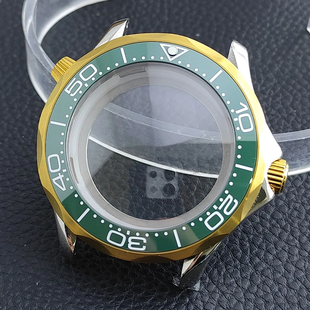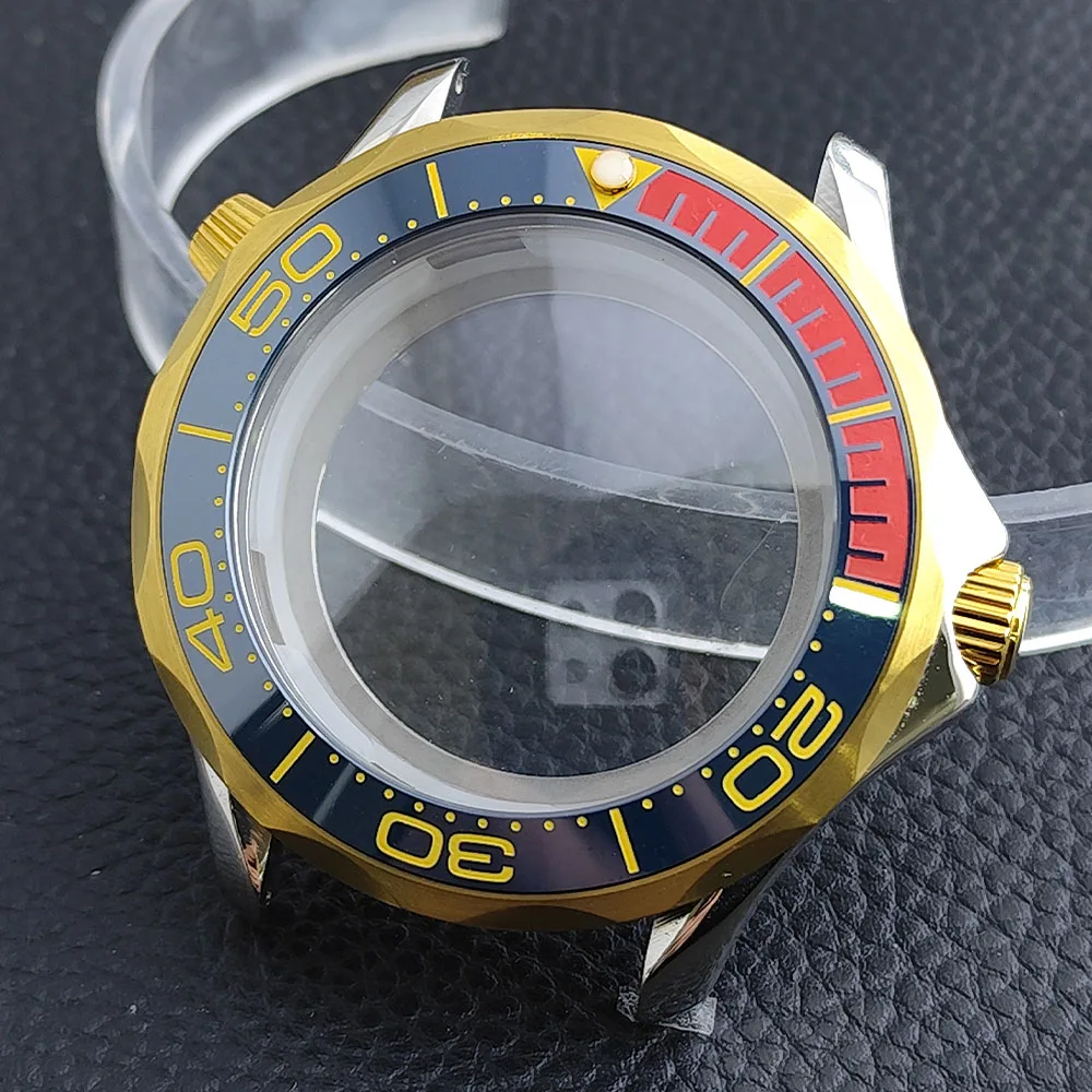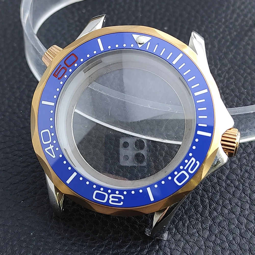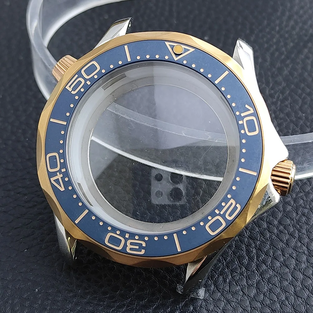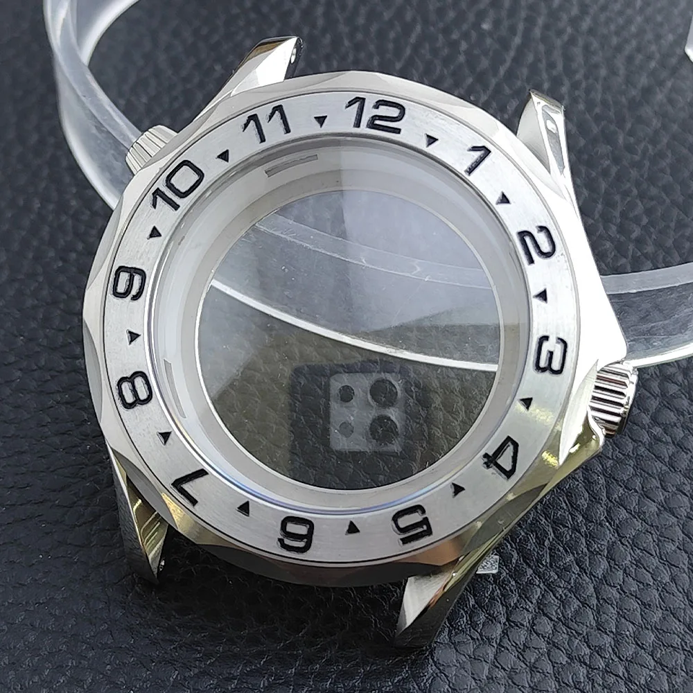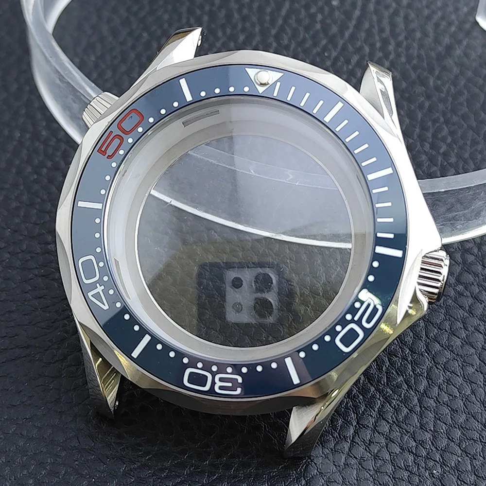 Embrace the sophisticated design of this 42mm watch case, expertly crafted to accommodate your NH34/NH35 movement. Made from durable stainless steel, this timepiece promises longevity and style. The striking deep blue bezel, adorned with white markings, enhances readability while adding a sporty flair. The convex sapphire glass offers clarity and scratch resistance, ensuring your watch remains pristine. Notably, the prominent crown protectors enhance its robustness, and the elegant finishes give it a modern appeal. Visualize yourself wearing this stunning component, expertly fitting your unique style and functionality needs.
