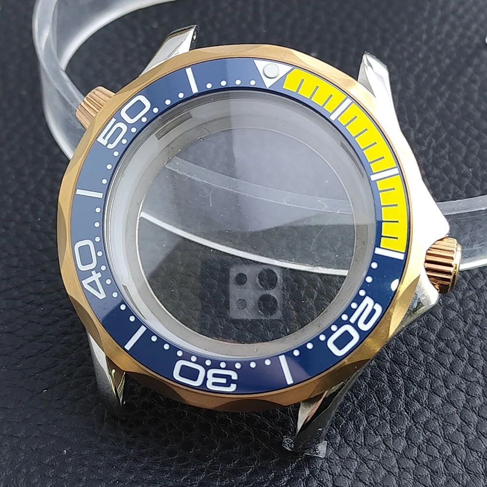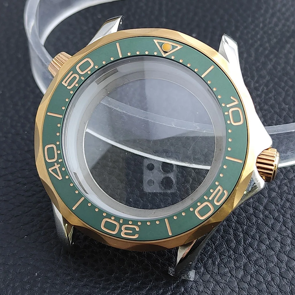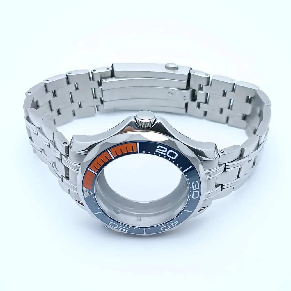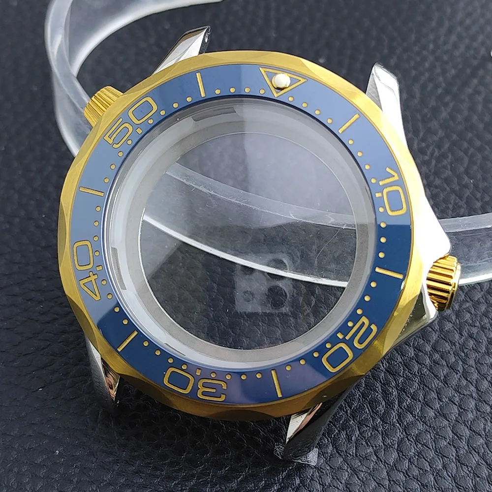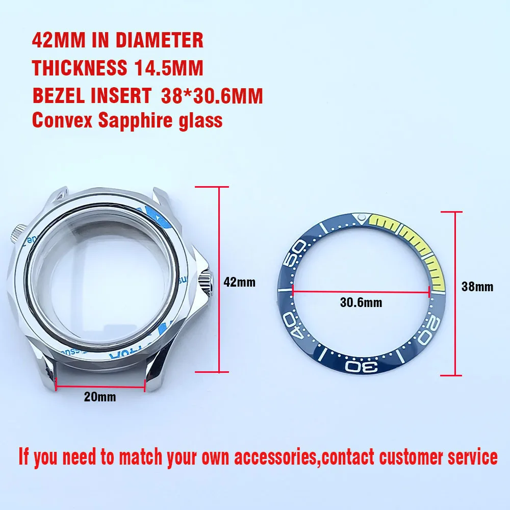Embrace the sophisticated design of this 42mm watch case, expertly crafted to accommodate your NH34/NH35 movement. Made from durable stainless steel, this timepiece promises longevity and style. The striking deep blue bezel, adorned with white markings, enhances readability while adding a sporty flair. The convex sapphire glass offers clarity and scratch resistance, ensuring your watch remains pristine. Notably, the prominent crown protectors enhance its robustness, and the elegant finishes give it a modern appeal. Visualize yourself wearing this stunning component, expertly fitting your unique style and functionality needs.