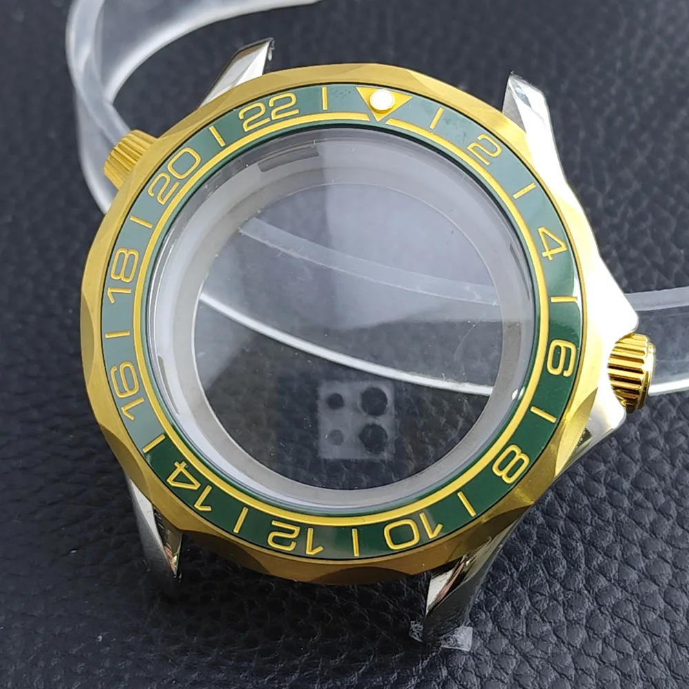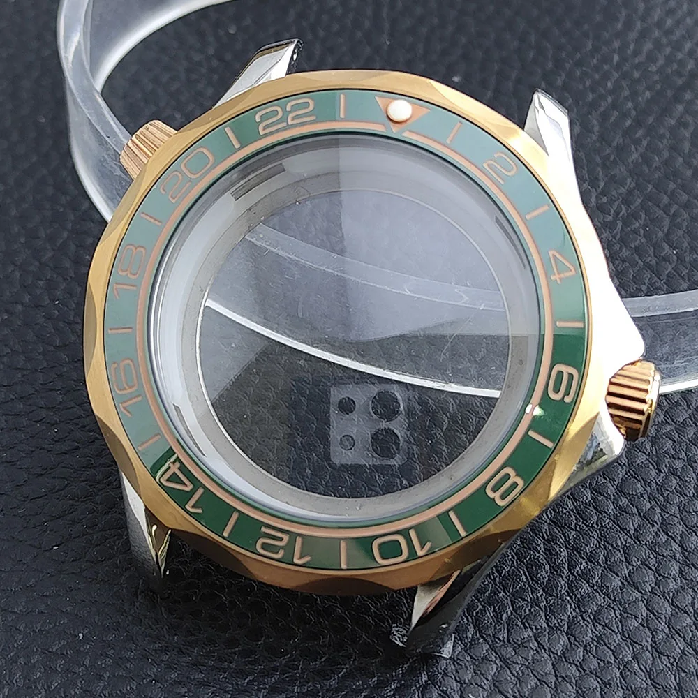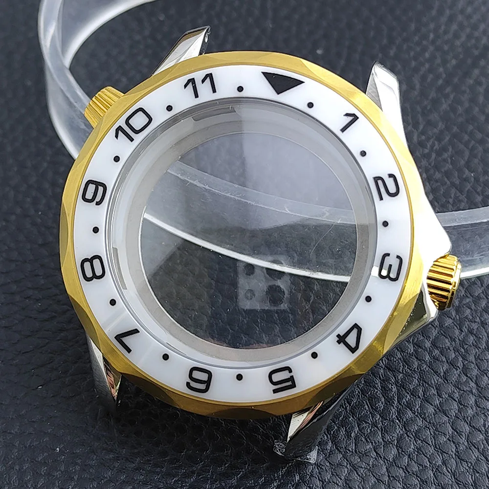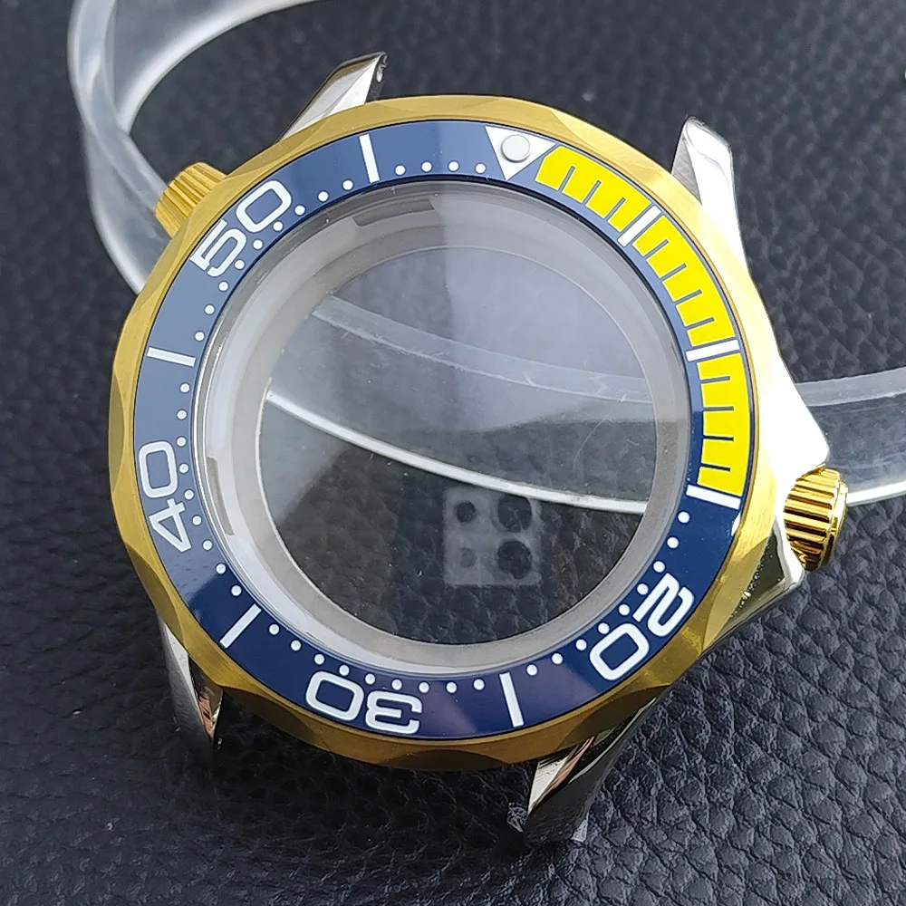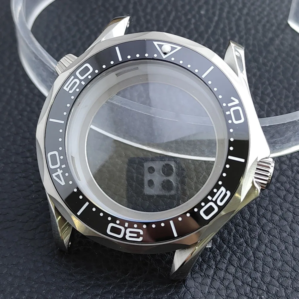 Embrace the sophisticated design of this 42mm watch case, expertly crafted to accommodate your NH34/NH35 movement. Made from durable stainless steel, this timepiece promises longevity and style. The striking deep blue bezel, adorned with white markings, enhances readability while adding a sporty flair. The convex sapphire glass offers clarity and scratch resistance, ensuring your watch remains pristine. Notably, the prominent crown protectors enhance its robustness, and the elegant finishes give it a modern appeal. Visualize yourself wearing this stunning component, expertly fitting your unique style and functionality needs.