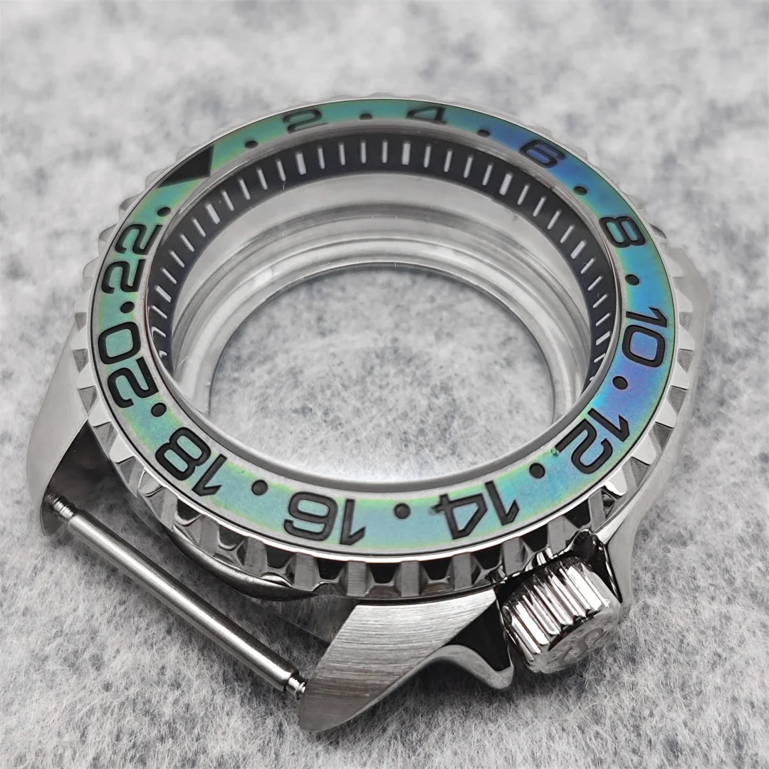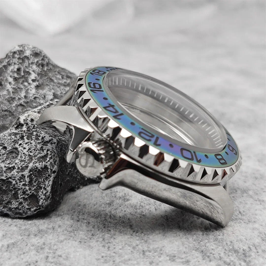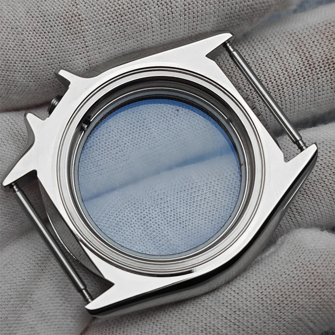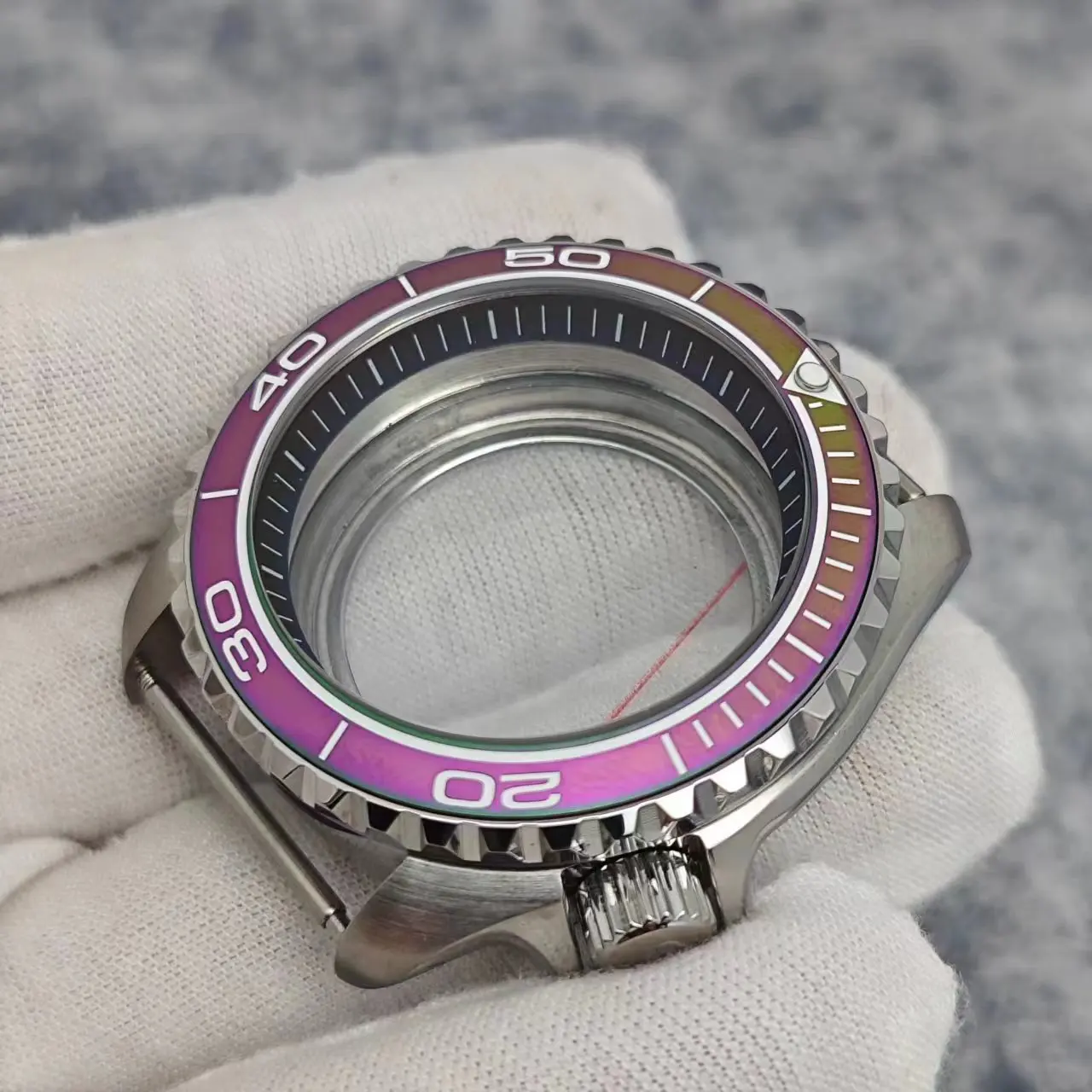 Imagine elevating your watch collection with this stunning 42mm stainless steel case, designed for ultimate durability and style. The brushed metal finish lends a refined matte look, perfectly balanced with the robust construction. The prominent black or dark grey unidirectional bezel, engraved with clear minute markers and large numerals at every ten-minute interval, enhances readability and offers an industrial, high-performance aesthetic. The raised sapphire crystal, tinted deep sapphire blue and double thickened for extra scratch resistance, complements the case’s overall sophistication. The knurled crown engraved with an “S” ensures easy grip for adjustments, while the lugs extend smoothly for attaching a 22mm strap. This case truly combines rugged toughness with modern elegance, ideal for personalized watch modifications.
