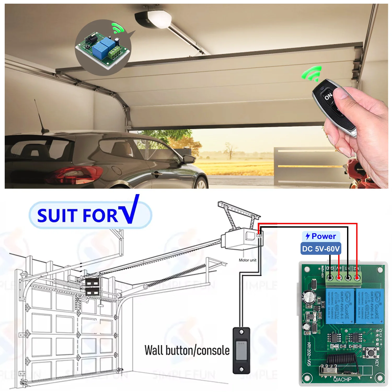 - Technical specifications: ASK modulation, transmission range over 50 meters, two relay modules, and compatibility with various devices requiring 433MHz RF remote control.