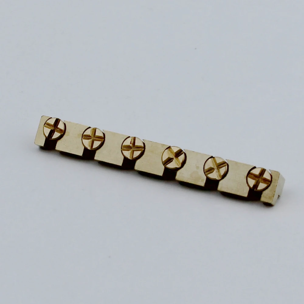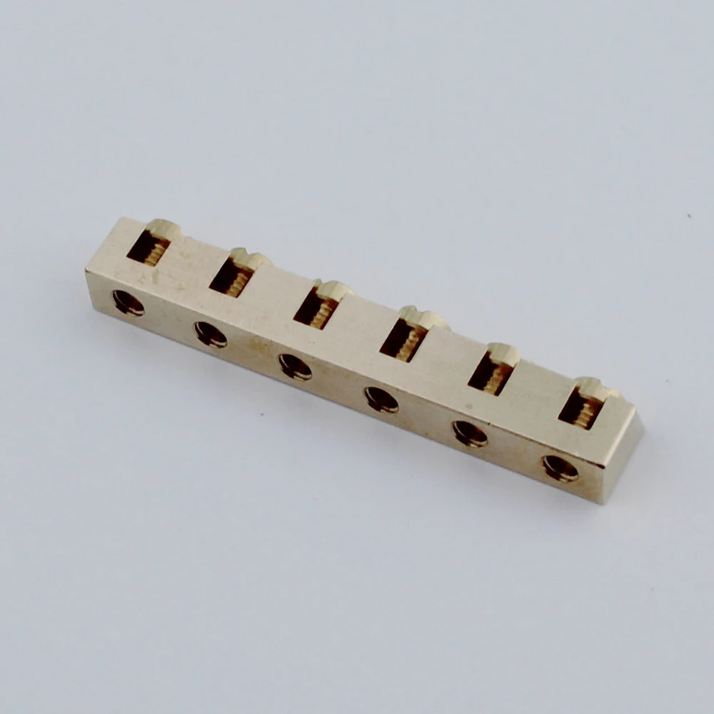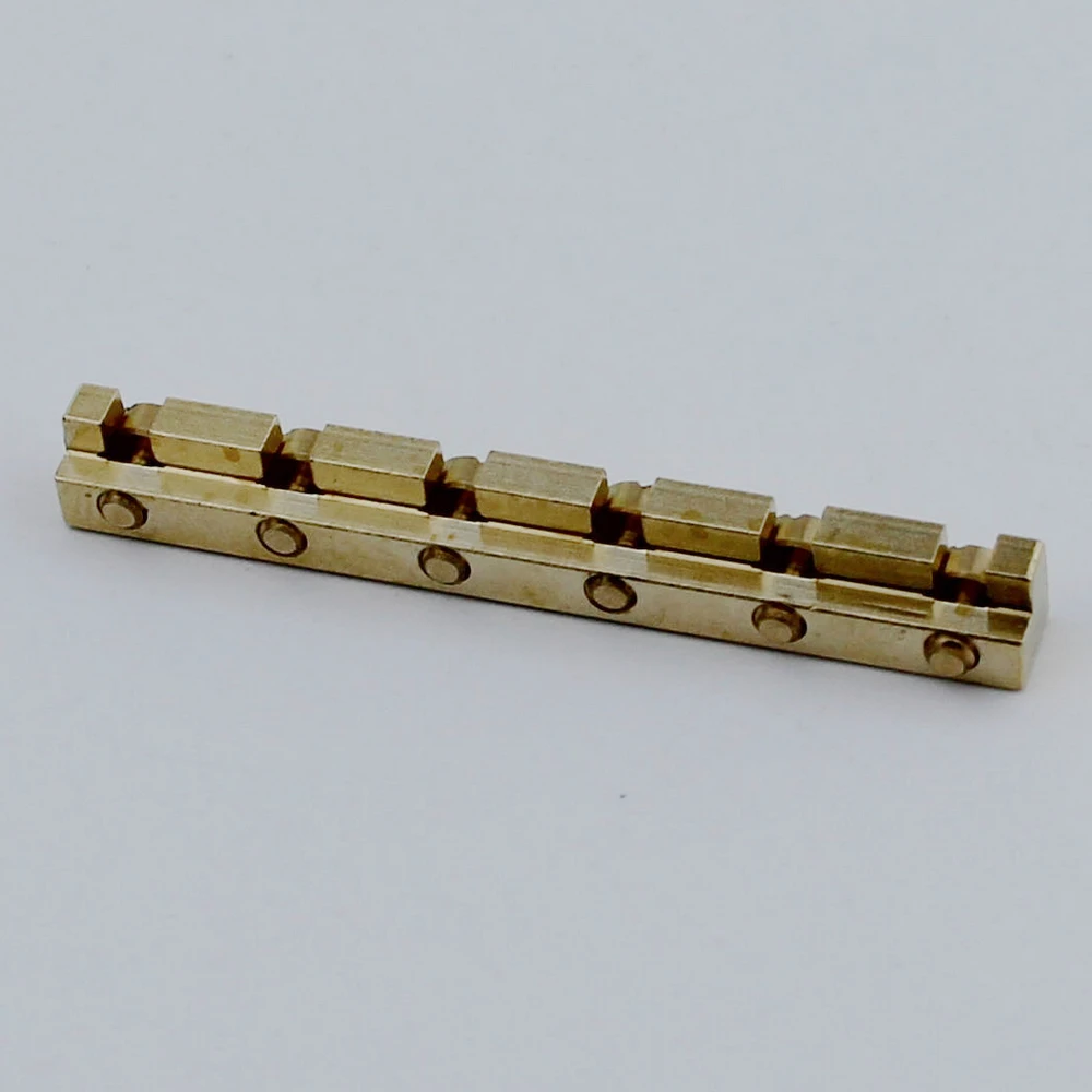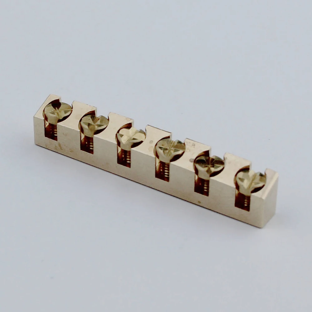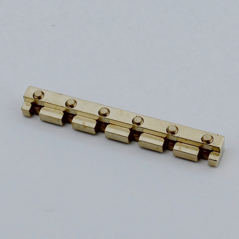 Elevate your guitar playing experience with this 43mm height adjustable brass guitar nut, expertly crafted for optimal performance. Made from durable brass, this nut is designed to enhance the brightness and resonance of your instrument. The polished finish not only provides an elegant aesthetic but also ensures smooth string action. With pre-slotted grooves that accommodate standard string spacing, installation is quick and easy, making it an excellent choice for both novice and seasoned musicians. Compatible with many styles, including Les Paul and SG guitars, this nut combines quality craftsmanship and functionality effortlessly.