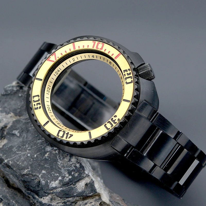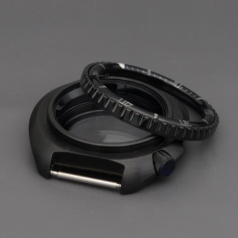 Imagine owning a sleek and durable timepiece that combines functionality with a modern aesthetic. This high-quality black watch case is specially designed to elevate your diving or sports watch experience. Crafted from premium 316L stainless steel, it features a 44mm diameter and 14mm thickness, providing a comfortable yet bold presence on your wrist. The sapphire crystal glass ensures exceptional scratch resistance and clarity, while the copper chapter ring adds a touch of sophistication. Its robust construction, including a stainless steel perspective bottom cover and water resistance up to 200 meters, makes it perfect for adventurous outings. Whether you're replacing a worn case or customizing your watch, this case guarantees style, precision, and reliability.