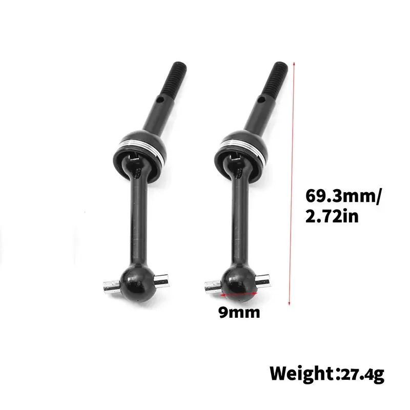 Upgrade your 1/10 RC car with this set of high-quality 45# hardened steel drive shafts, available in 2-piece or 4-piece configurations. Designed for compatibility with Tamiya TT-01, TT02, TT01D, TT01E, and TA04 models, these durable shafts feature a sleek, black finish with chrome-colored pins at the ball joints and silver rings for added stability. Their robust construction improves both appearance and performance, ensuring smooth articulation and reliable operation. Easy to install and replace, these shafts are ideal for enthusiasts seeking to enhance their RC vehicle’s durability and functionality. Suitable for users aged 14 and above.