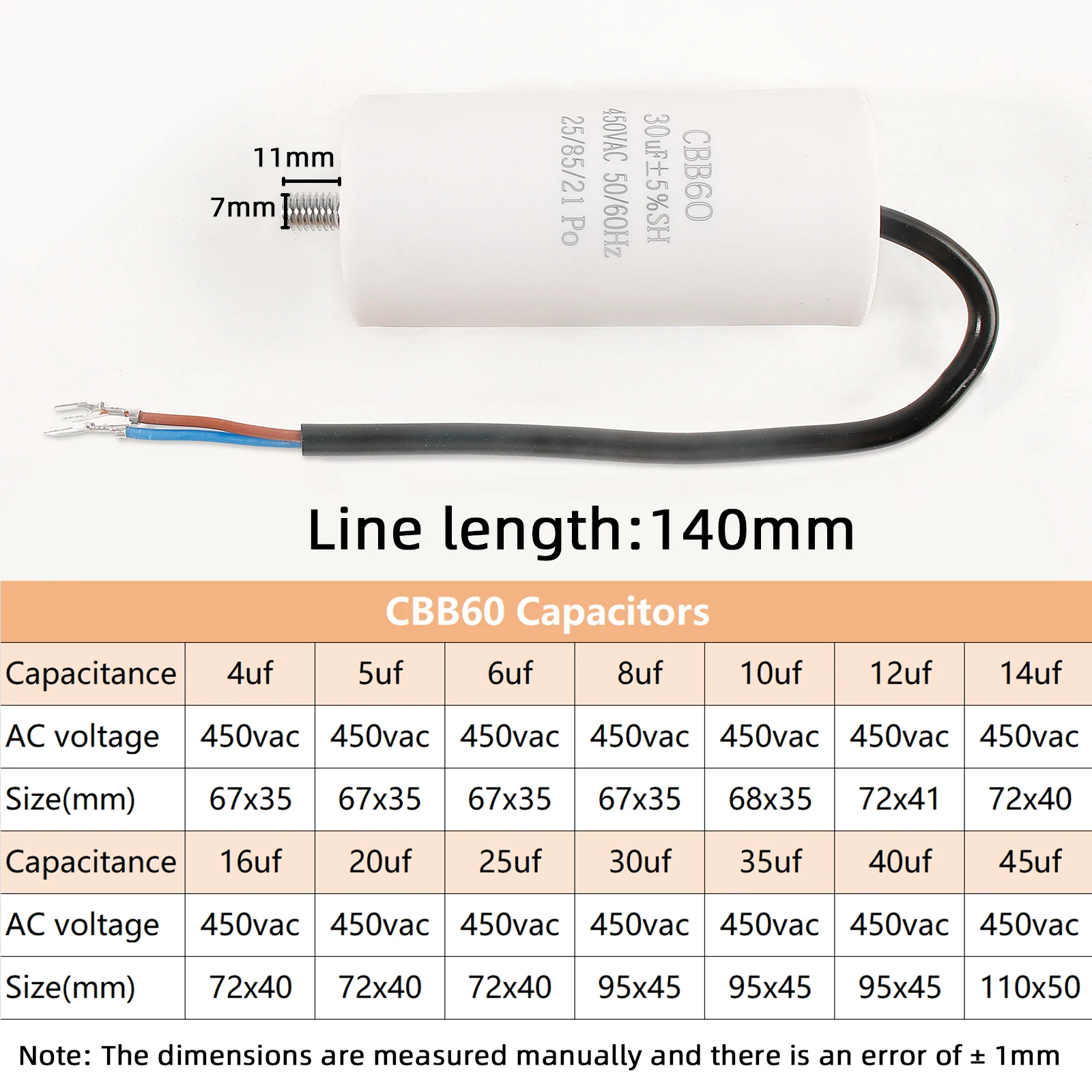 Imagine your appliances running smoothly and efficiently, thanks to this high-performance CBB60 motor run capacitor. Its robust build and versatile compatibility make it an ideal upgrade for various motors and appliances. By choosing this capacitor, you’re investing in peace of mind, knowing your equipment will maintain peak performance for years. Whether repairing or replacing, this capacitor offers a perfect blend of technical excellence and easy installation, ensuring your machinery operates safely and reliably. Elevate your maintenance routine with this trusted component today for long-term efficiency and safety in all your motor-driven devices.