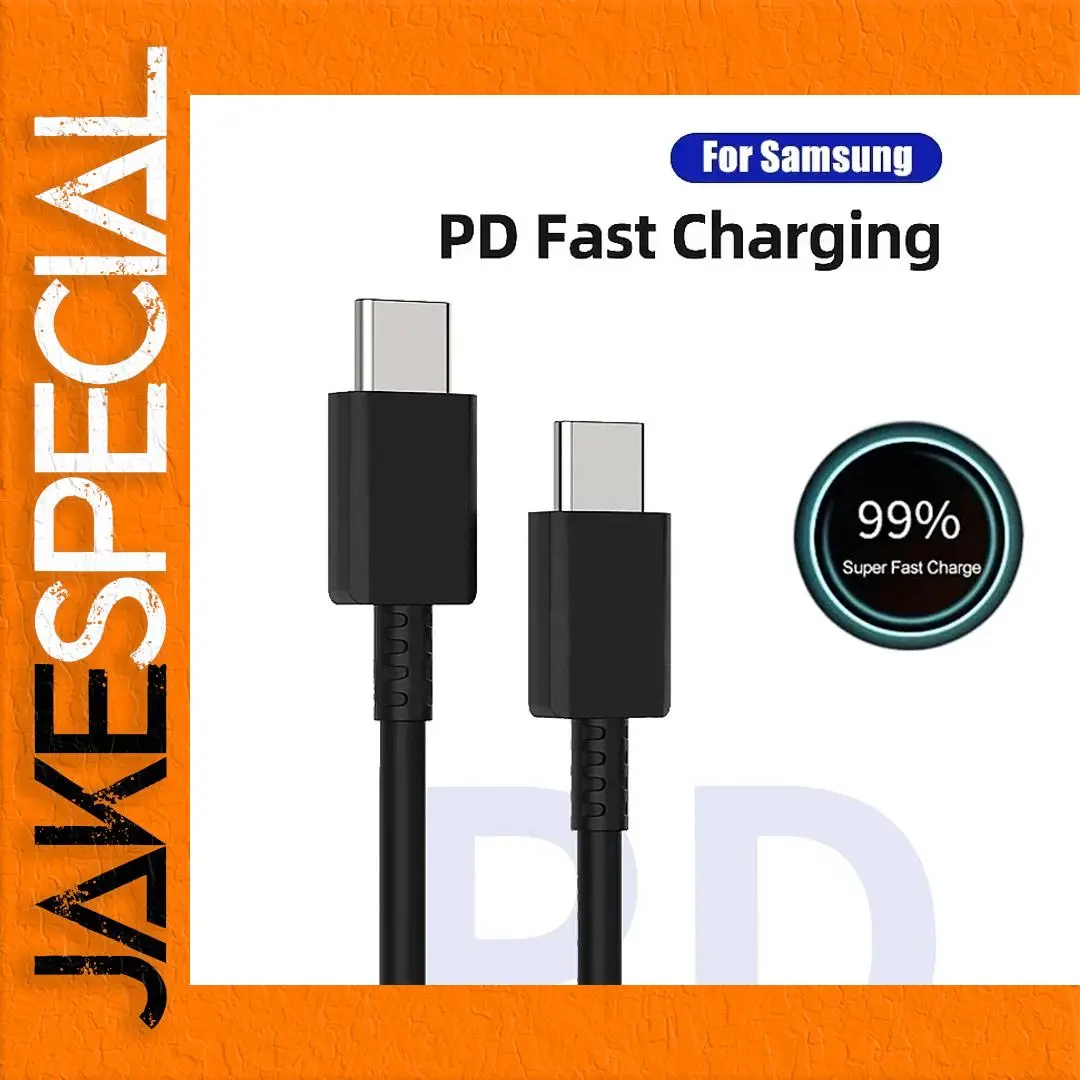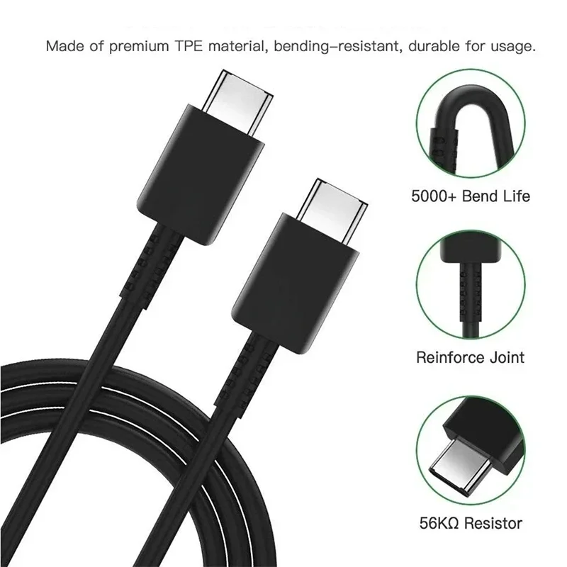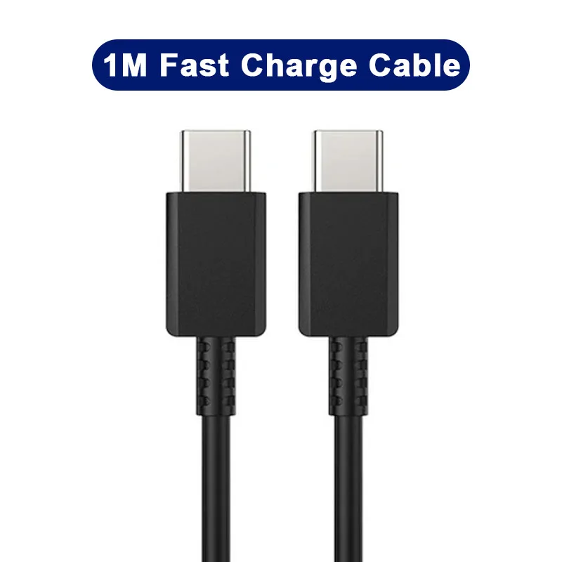 Experience the convenience of the 45W Dual USB-C Fast Charging Cable, available in lengths of 1m, 1.5m, and 2m. With a maximum current of 5A, this cable ensures rapid charging for your devices, compatible with Samsung models including S22, S23, S24, Note 20 Ultra, A53, A54, and A55. The cable features durable PVC material and a sleek black design with two shiny metallic Type-C connectors for a secure fit. Enhanced with grooved sections for better grip, this cable is built for efficiency and longevity, making it perfect for your everyday charging needs.