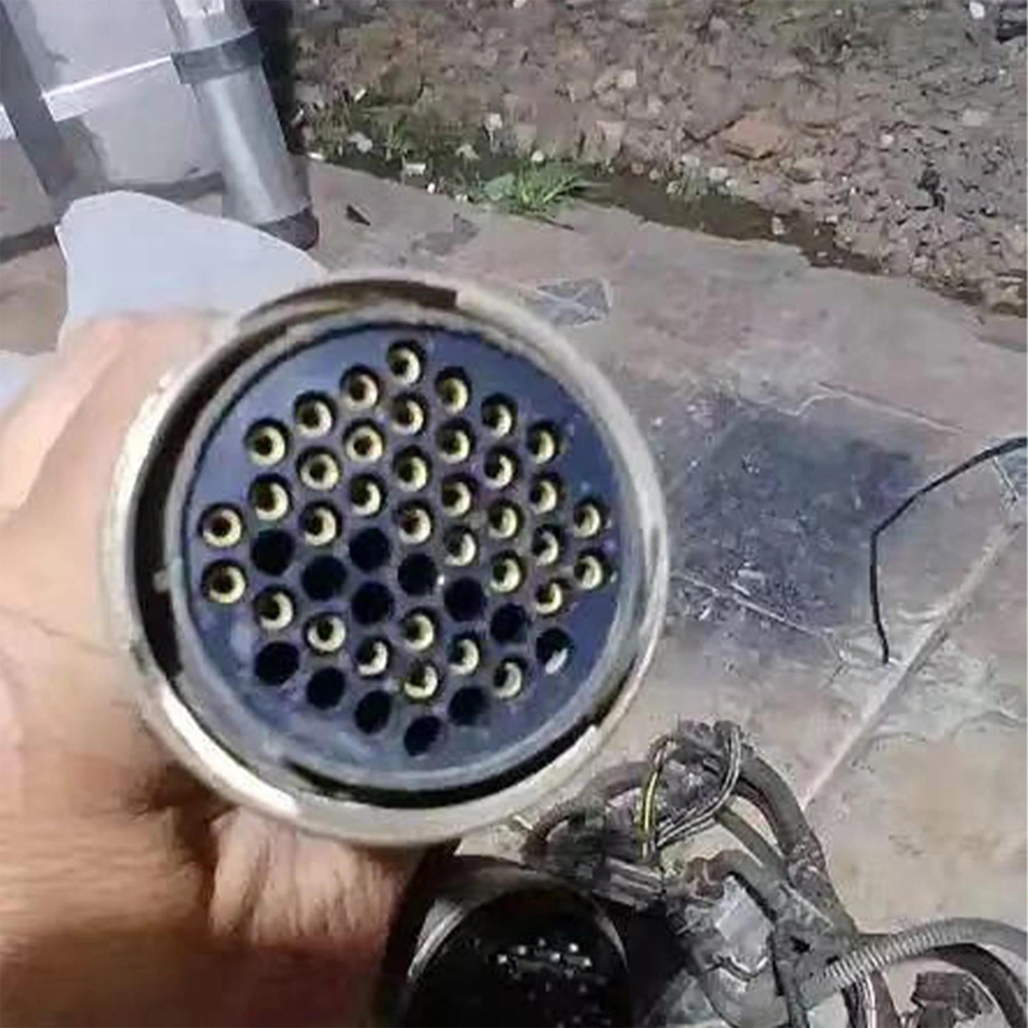 The 48-hole automotive wiring harness connector plug is expertly designed to ensure secure and reliable electrical connections in various automotive applications. Featuring a robust cylindrical shape with a configuration lock buckle, this connector supports organized wiring with its 48 metallic pins arranged neatly in a grid layout. The exterior is made from durable black plastic, providing an industrial yet sleek finish. With a cable length of 2.5 meters that is protected by flexible sheathing, it allows for easy installation while offering great adaptability in movement. Trust in the craftsmanship of this connector to enhance your vehicle's electrical system, ensuring optimal performance wherever you go.