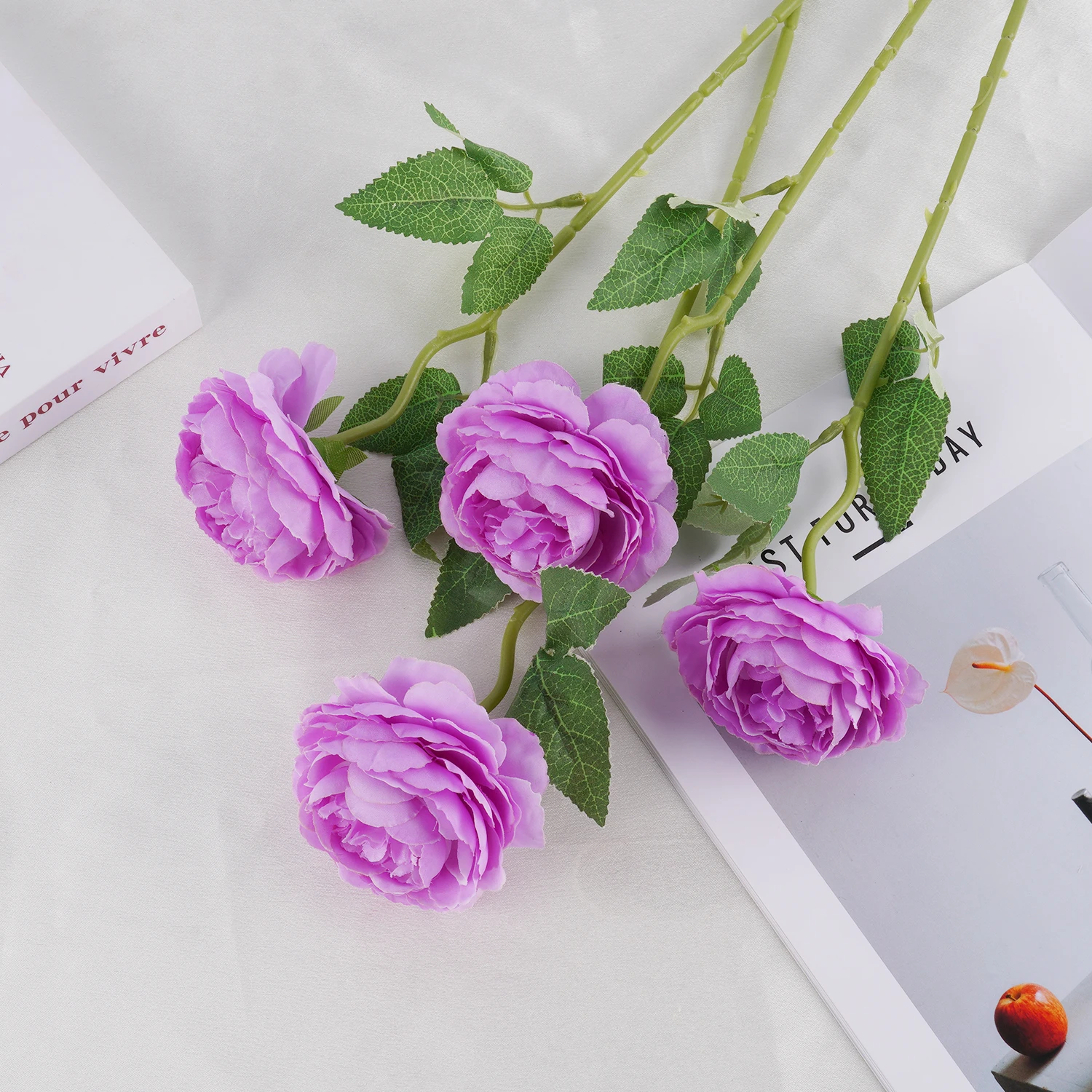 Elegant 48cm Artificial Pink Roses for Decor