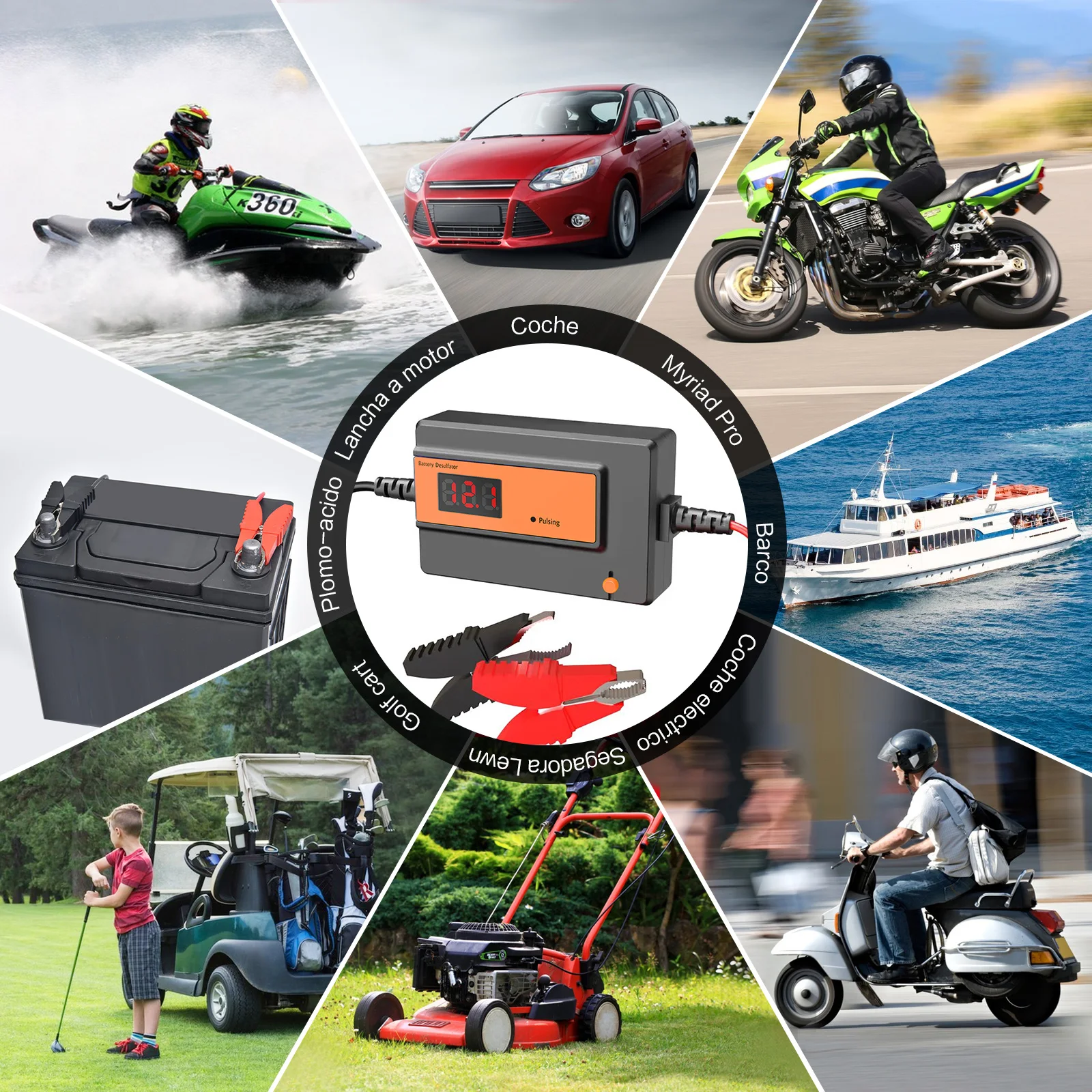 Imagine never worrying about dead batteries again. With this advanced desulfator, you can maintain your vehicle’s battery health effortlessly, prolonging its lifespan and saving money. Its innovative pulse technology restores weak batteries to optimal performance, ensuring reliable starts and smooth operation. Whether you own a car, motorcycle, boat, or RV, this device fits seamlessly into your maintenance routine. Buying this product is an investment in peace of mind and efficiency. Experience the difference today and enjoy longer-lasting batteries that keep your adventures going without interruption.