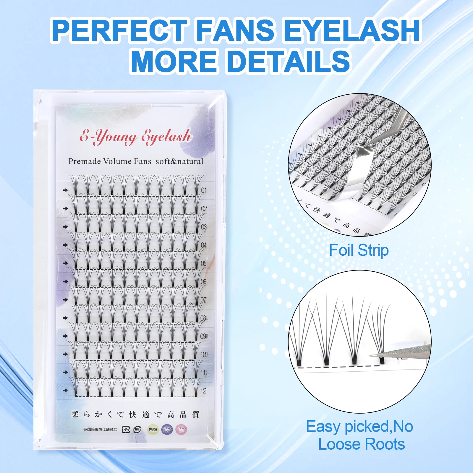 Experience the luxurious volume with these 4D and 5D premade fan eyelash extensions, featuring a natural-looking Camellia curve design that seamlessly blends with your lashes. Crafted from lightweight, synthetic fibers, each fan measures between 8mm and 15mm with curl options in C and D and a uniform thickness of 0.10mm. The quick application process, requiring no fanning, allows for instant glamorous results perfect for both professional salons and DIY enthusiasts. These high-quality, fluffy false eyelashes deliver a dramatic, layered effect, providing all-day comfort and a polished, natural appearance that enhances your eyes effortlessly.