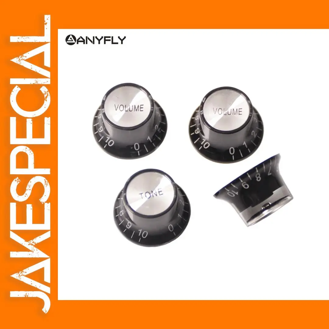 Enhance your electric guitar's style and functionality with this four-piece black aluminum control knob set. This set includes two tone knobs and two volume knobs, designed for easy adjustments while playing. The sleek dome shape offers a modern aesthetic, ensuring your instrument not only sounds great but looks great too. As you replace your existing knobs, you’ll appreciate the comfortable handling and precise control that these knobs provide. Visualize your guitar shining on stage as the metallic finish catches the light, allowing you to adjust your sound effortlessly. It's time to elevate your playing experience.