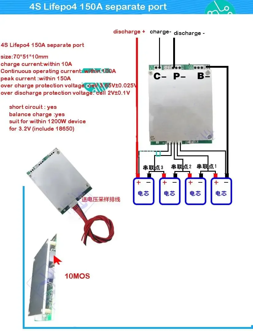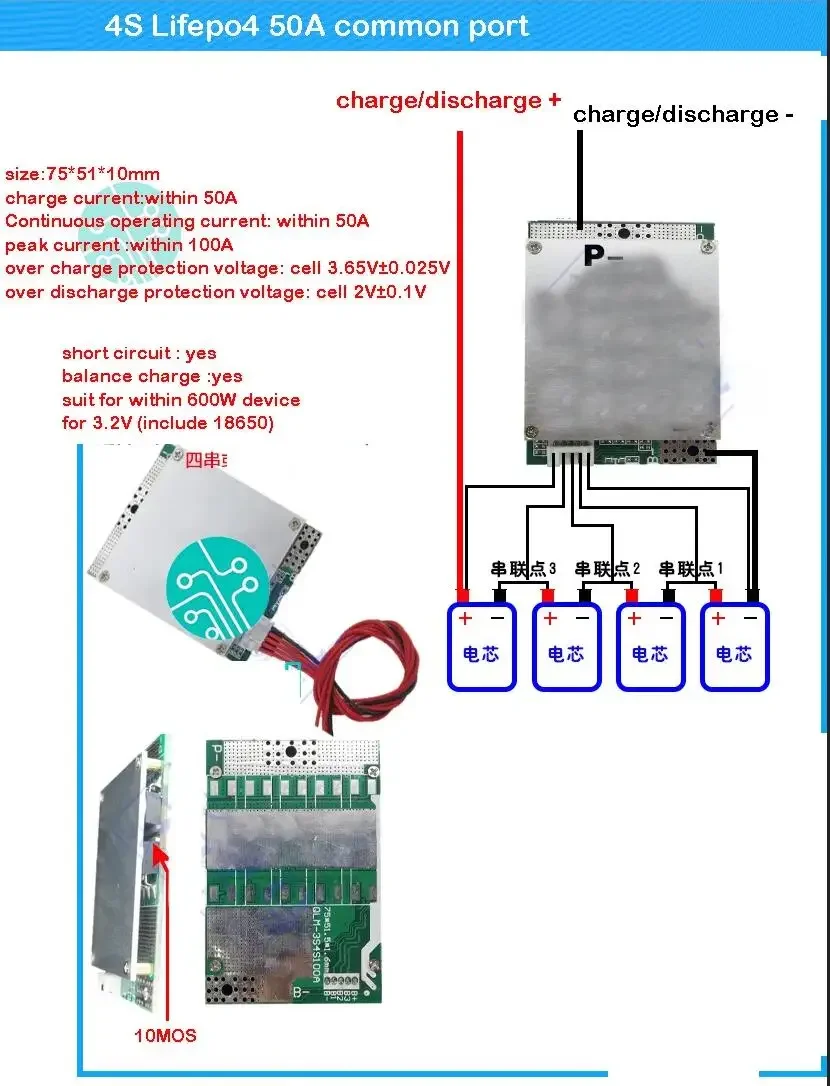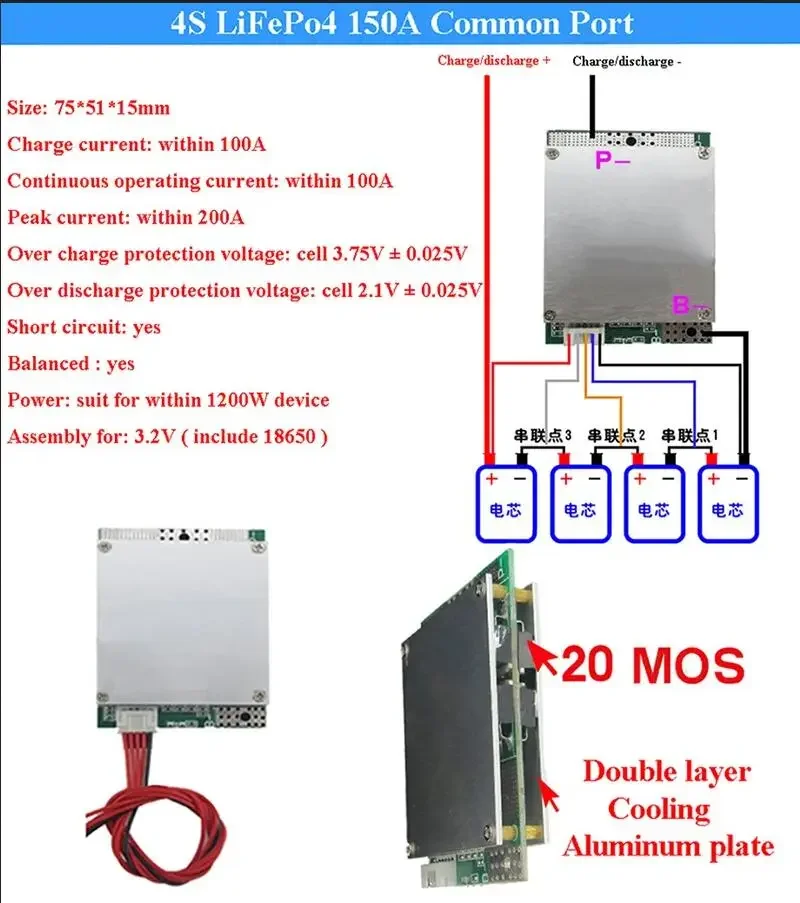 - Includes short circuit protection and balanced charging capabilities, ensuring each cell maintains voltage balance during operation, preventing damage and extending battery life.
