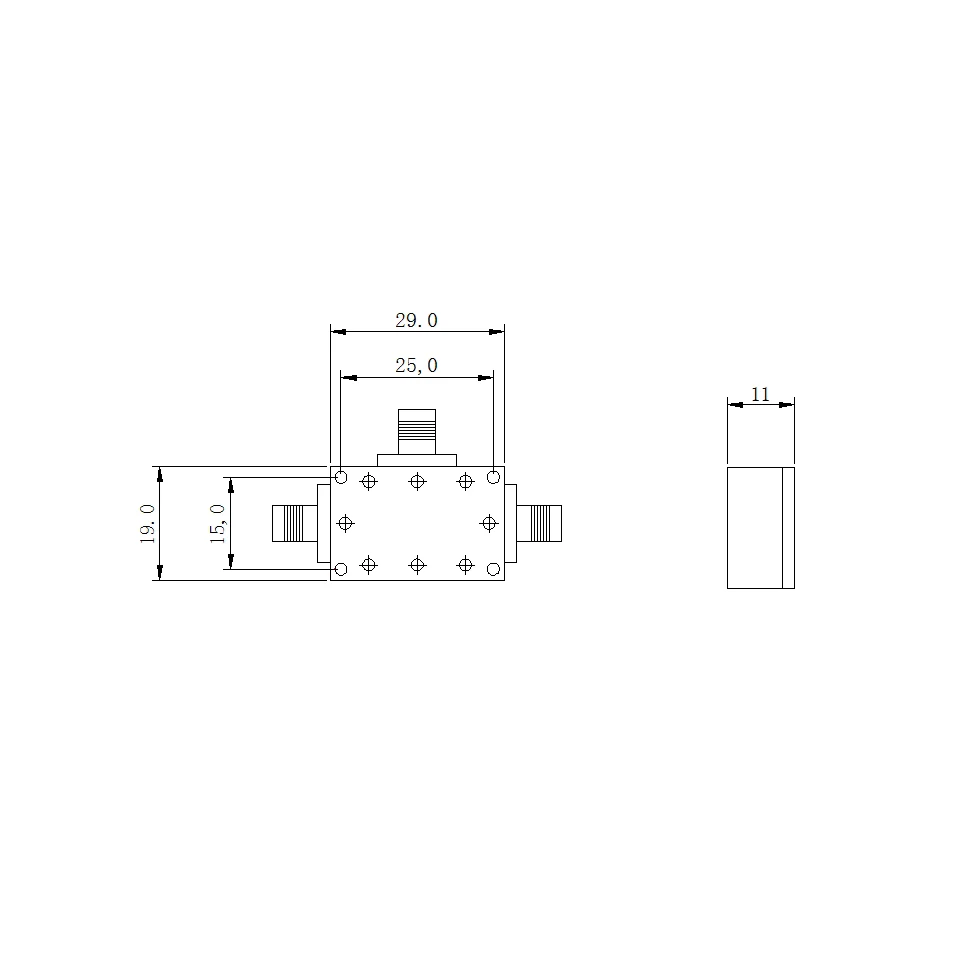 Experience precise and reliable signal transformation with this high-performance RF mixer, designed for frequencies from 5GHz to 21GHz. Its sleek, silver-colored CNC-structured shell provides excellent electromagnetic shielding, ensuring stable operation in demanding environments. Surrounding the compact, 29mm by 19mm by 11mm module are four gold-plated SMA connectors, offering secure, corrosion-resistant connections for input and output signals. The high-frequency circuit board delivers low insertion loss, optimizing signal quality during up and down conversions. Its professional, rugged design makes it ideal for advanced RF transceiver systems in communications like C-band, X-band, or Ku-band. Whether you’re upgrading your system or building a new project, this mixer ensures durable, high-frequency performance with sophisticated technical standards.