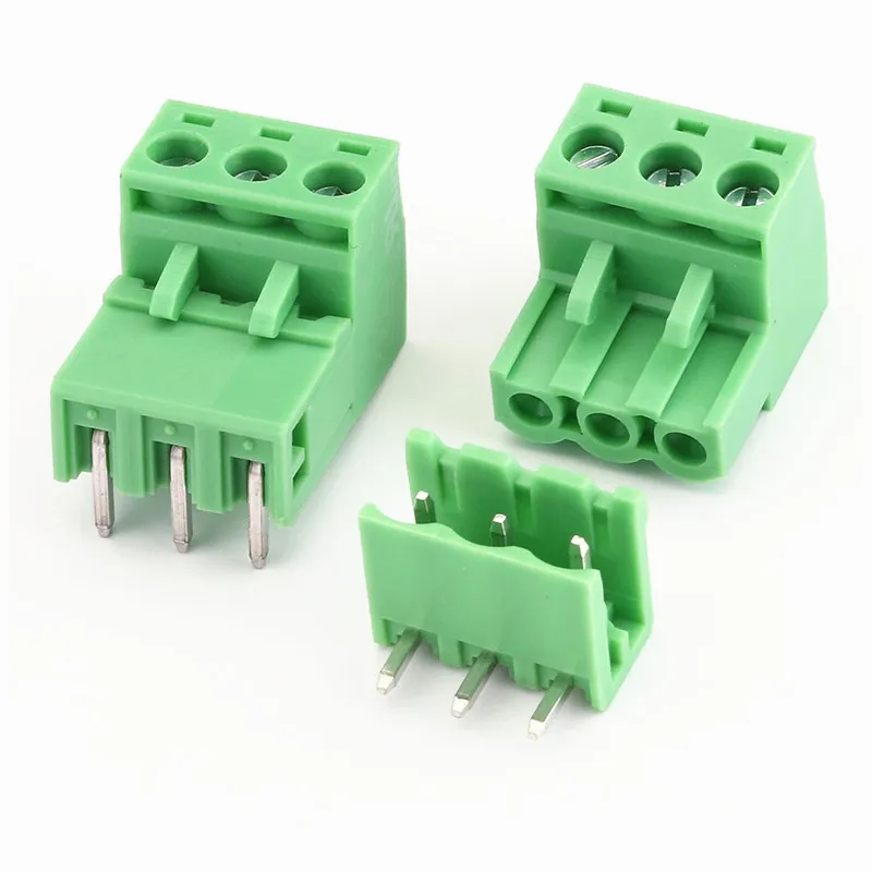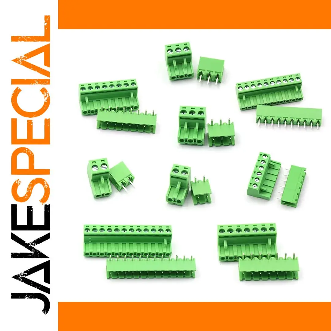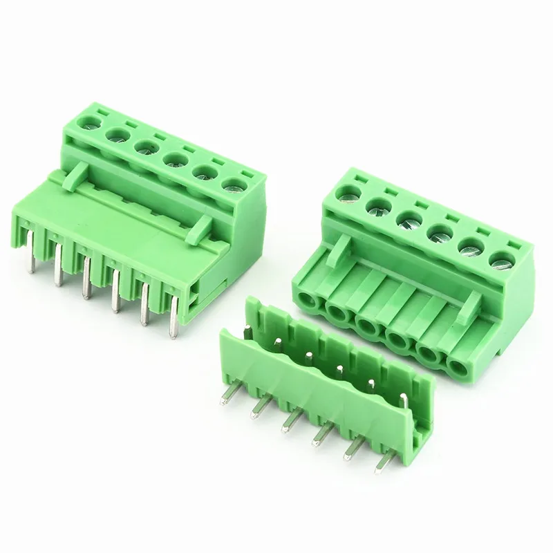 Imagine seamlessly connecting your circuit components with this set of five pairs of high-quality 5.08mm pitch PCB screw terminal blocks. Crafted for durability and precision, these connectors feature a vibrant green housing that clearly indicates their function while blending into your electronic setup. The male and female connectors are designed to fit various applications, offering models with 2 to 6 pins in both straight and right-angle configurations. Rated for up to 300V and 10A, they can handle wire gauges from 28 to 12 AWG, making them ideal for a variety of projects. Easy to install, with a stripping length of 7-8mm, these modules are your reliable choice for secure, efficient wiring in complex electronic environments.