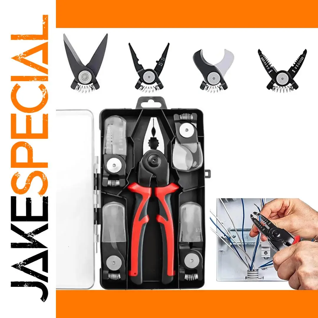 Experience the convenience and efficiency of this multifunctional pliers set designed for electricians, DIY enthusiasts, and professionals. Crafted from high-carbon steel, the tools are built for durability, corrosion resistance, and long-lasting performance. The ergonomic handle, finished in bold red and black, offers comfort and a secure grip during extended use. With six interchangeable heads, you can seamlessly switch between wire cutting (up to 1.6mm diameter), wire stripping (up to 6mm, AWG 10-22), crimping, bending, and twisting. This professional-grade set simplifies your electrical and mechanical tasks, saving space and reducing tool clutter, making it ideal for home repairs, electrical installations, and on-the-job efficiency. Invest in quality, versatility, and reliability with this essential toolkit.