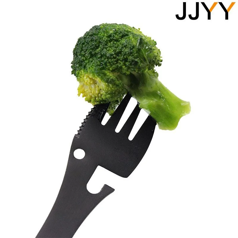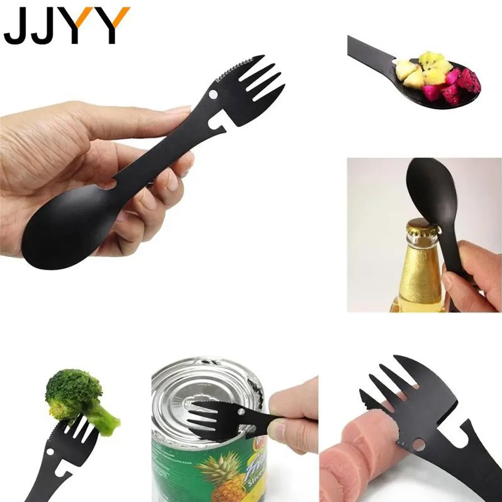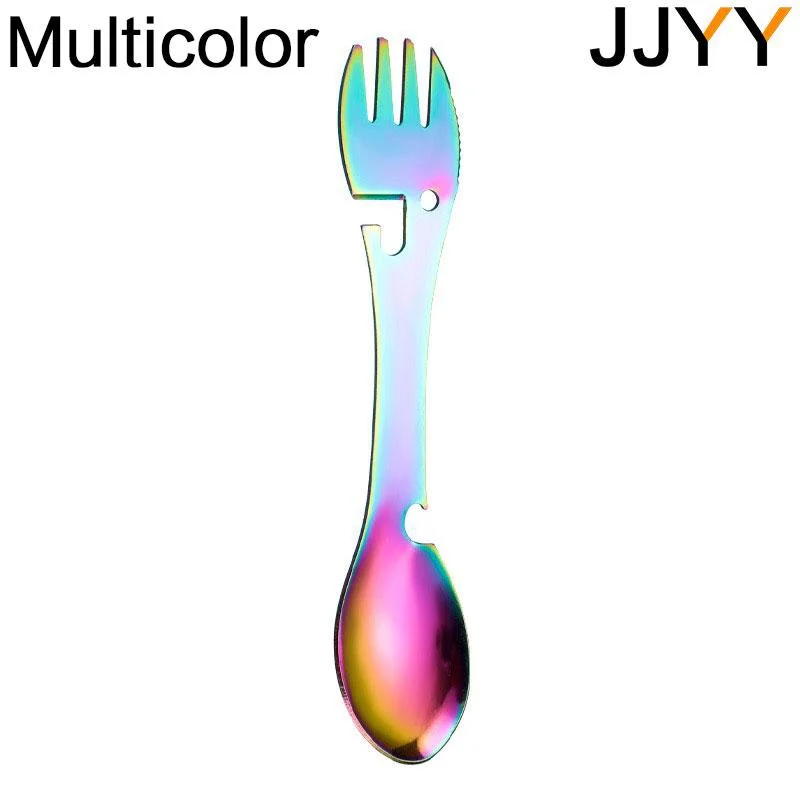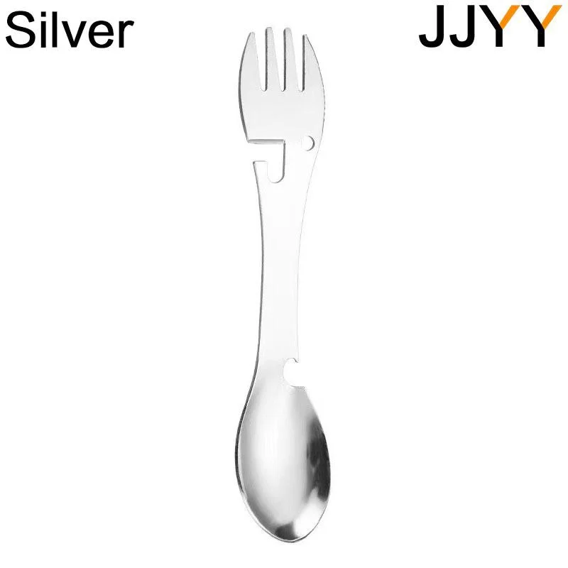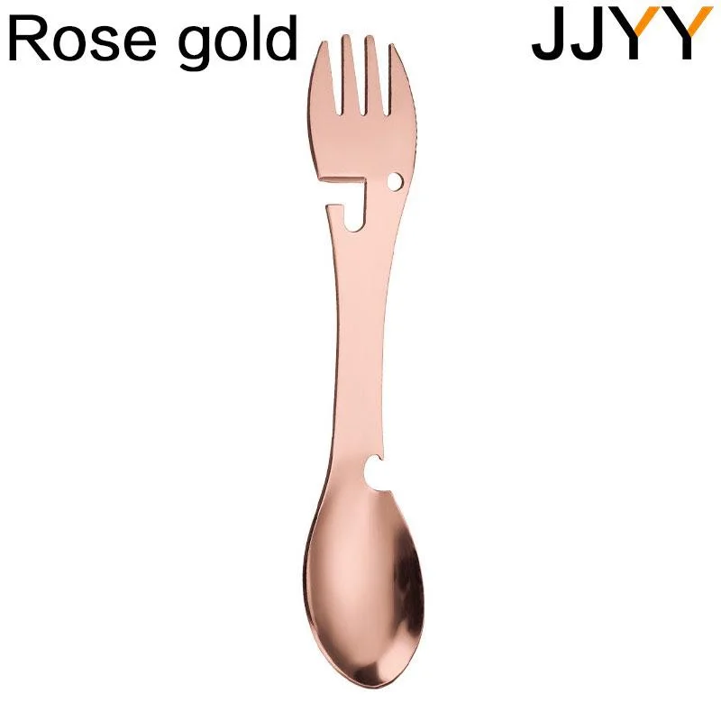 Experience the perfect blend of functionality and style with this stainless steel multifunctional utensil, measuring 175mm by 35mm and weighing approximately 41g. Designed for outdoor enthusiasts, it features five integrated tools: a fork, a spoon, a serrated cutter for slicing steak or sausage, a can opener, and a bottle opener. The sleek, minimalist design includes a keychain hole for easy carry and comes in five elegant colors—black, gold, multicolor, rose gold, and silver. Its durable construction and versatile functions make it an essential companion for camping, hiking, and outdoor adventures, combining practicality with modern aesthetic appeal.