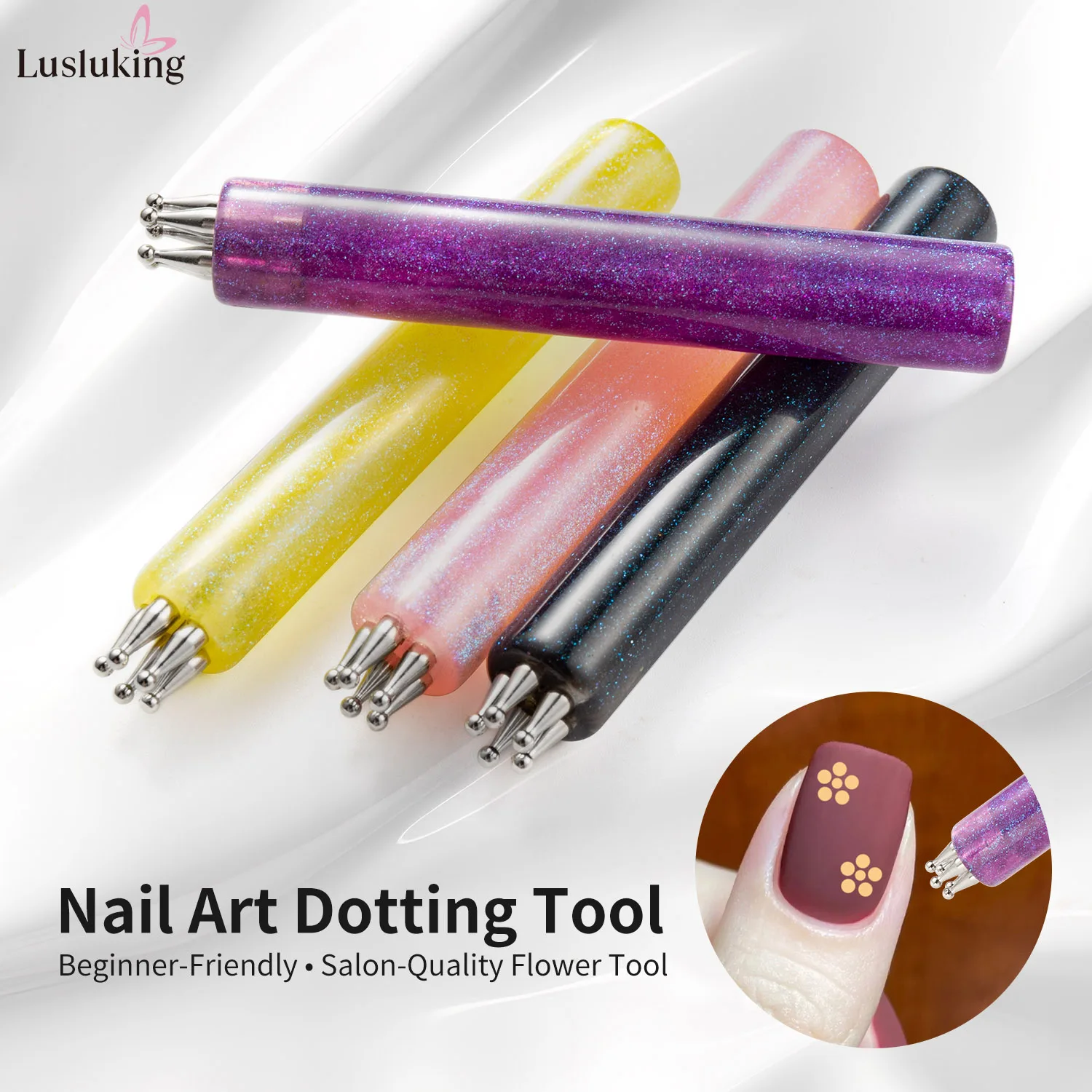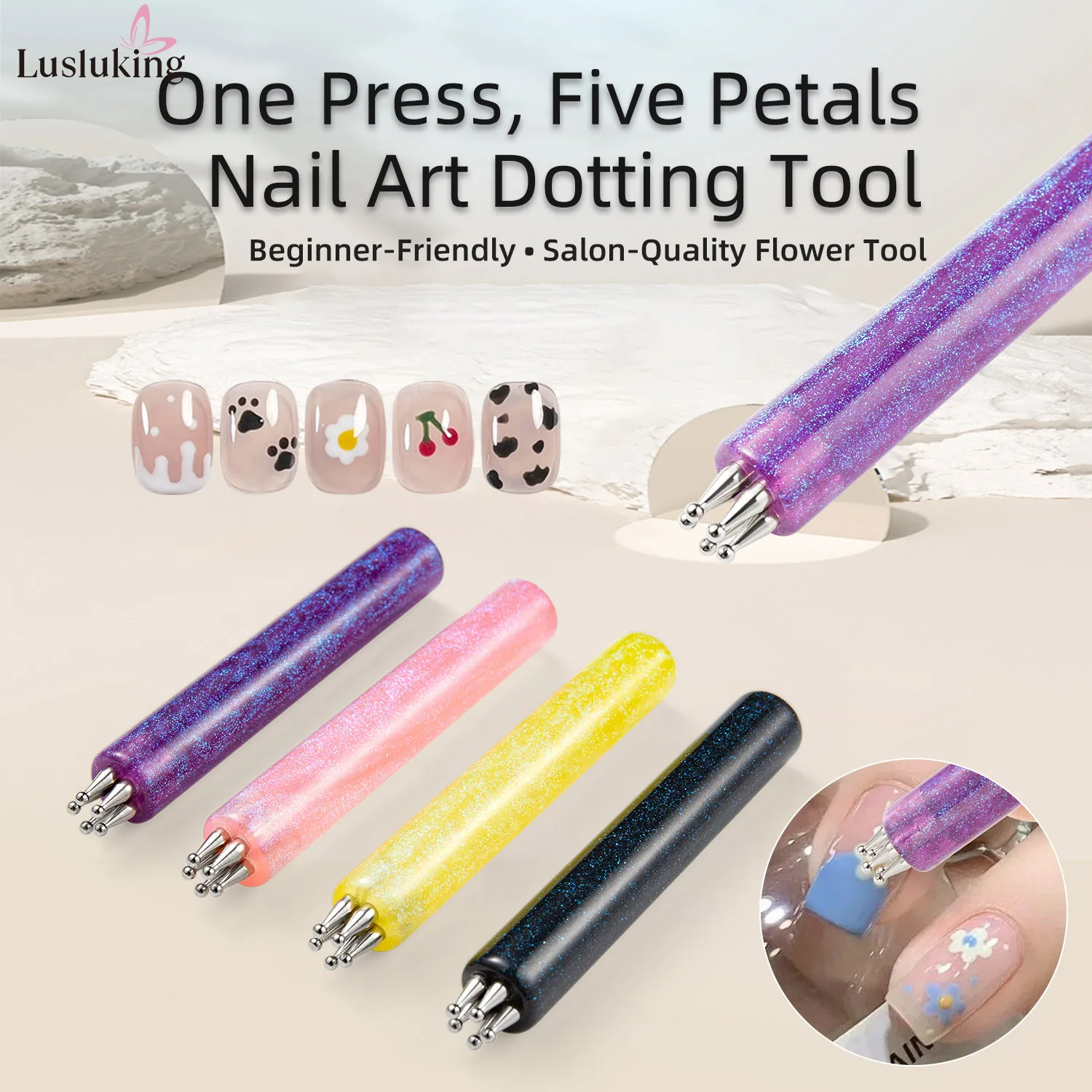 Transform your nail designs with this high-quality DIY Nail Art 5-Petal Dotting Tool. Crafted from durable acrylic, it features a shimmering, glittery handle that offers a stylish and comfortable grip. The 1.8mm fine tip ensures precise and effortless creation of detailed floral patterns, petals, or dots, making it ideal for both beginners and seasoned nail artists. The tool's vibrant color options—black, pink, purple, and yellow—let you match your style or coordinate with your nail designs. Its ergonomic, non-slip handle provides stability during use, enabling you to craft intricate nail art with ease. Elevate your manicure game by adding a touch of elegance and professionalism with this versatile and beautiful nail art tool.