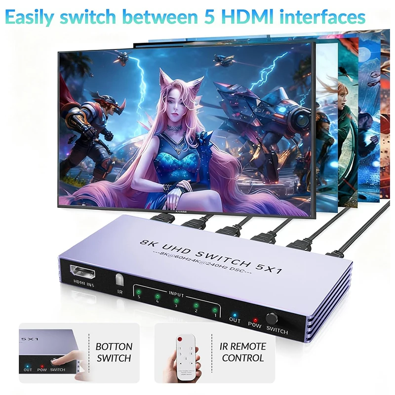 5-Port HDMI 2.1 Switch with 8K@60Hz Support