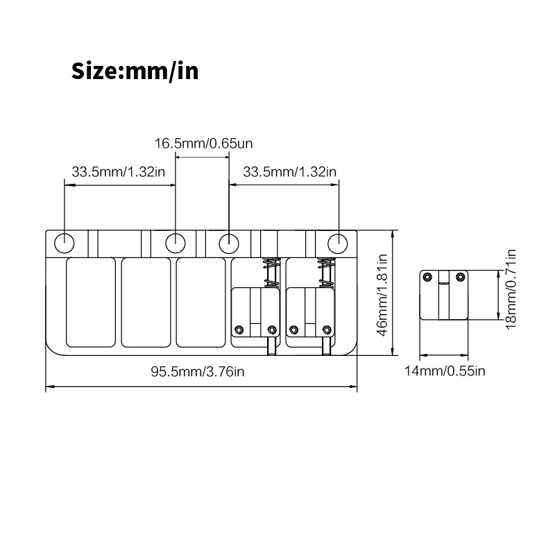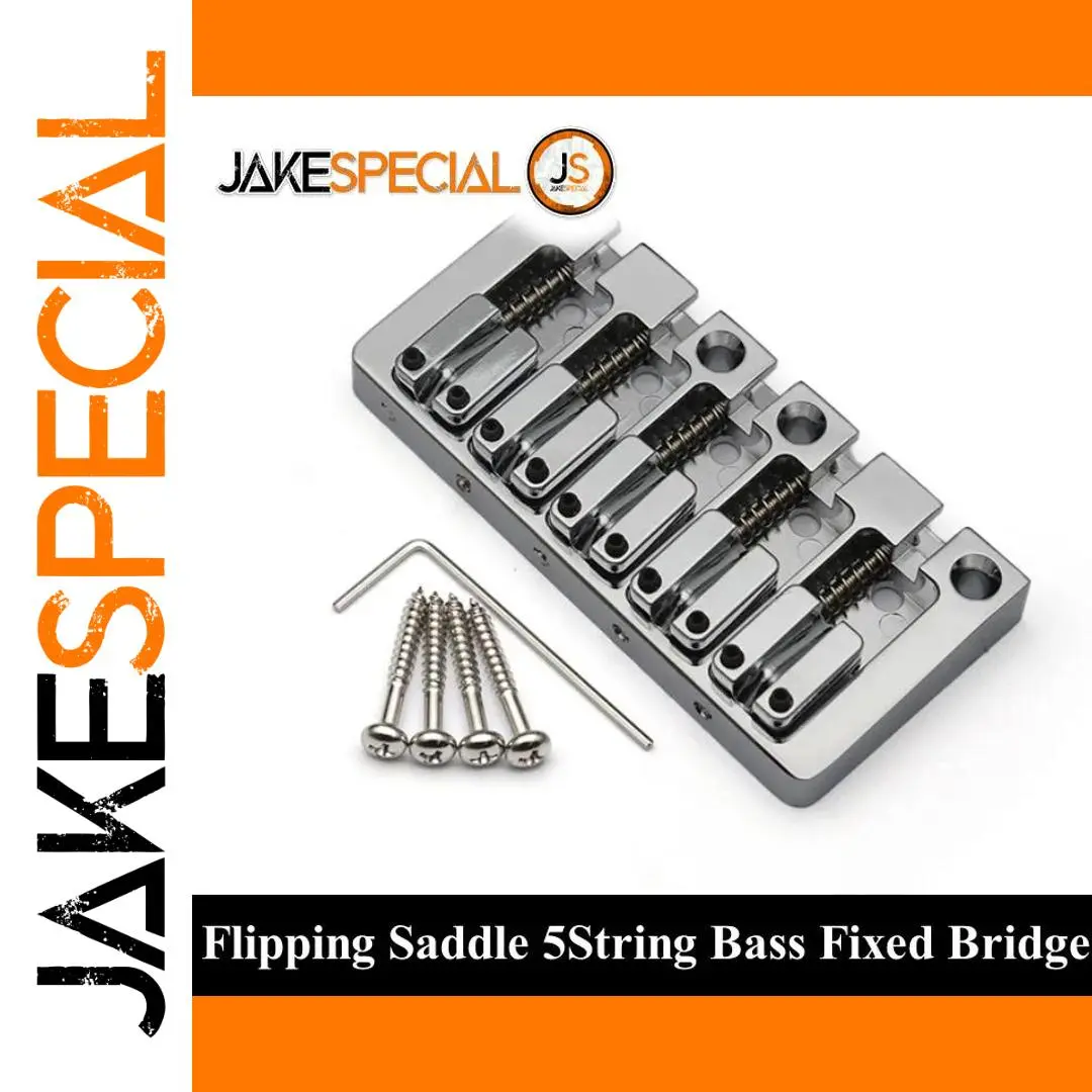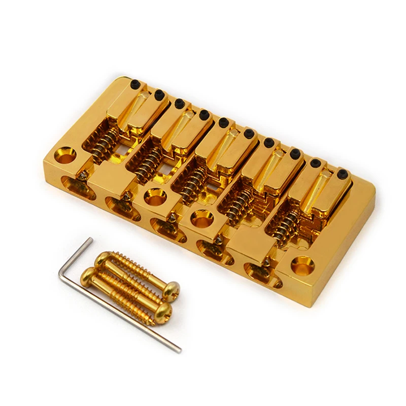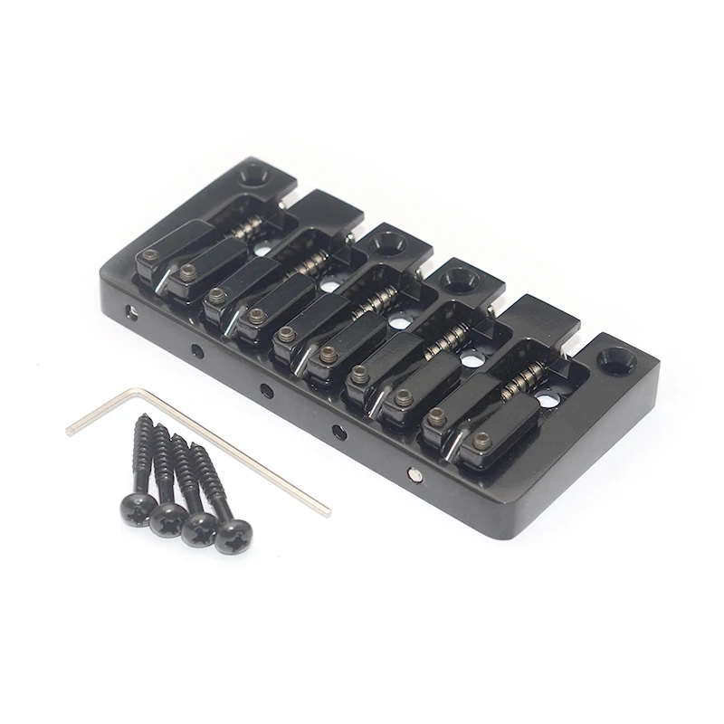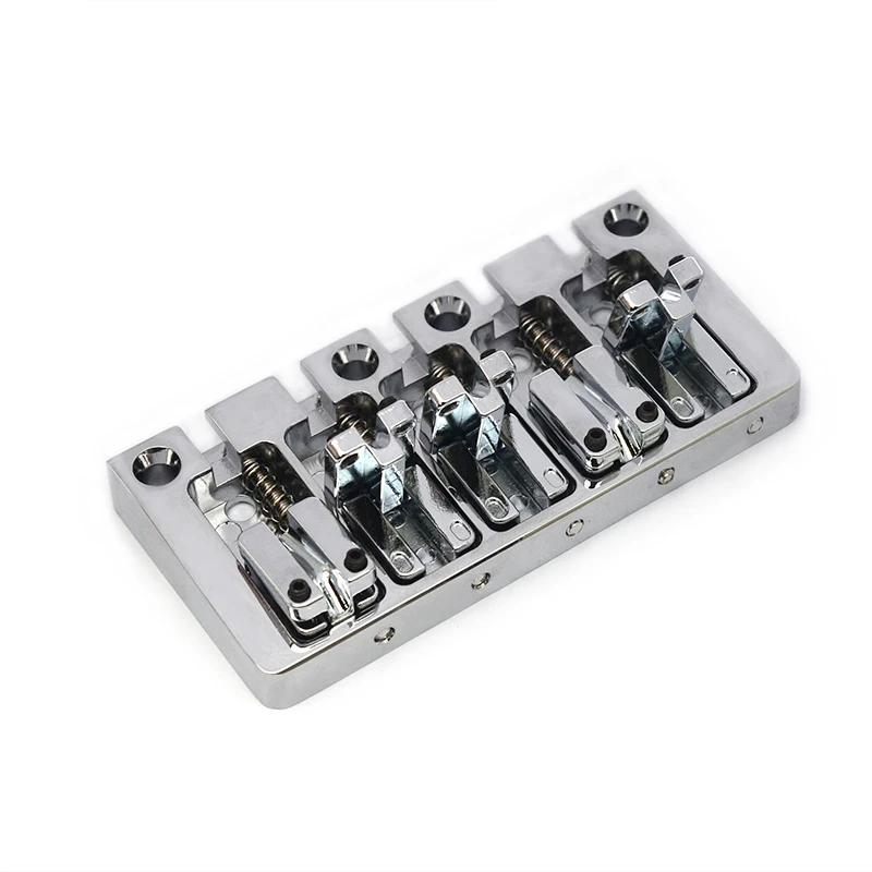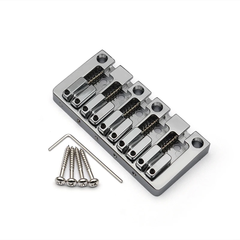 This high-quality 5-string bass bridge measures 95.5mm by 46mm and features a durable metal construction with a sleek, polished finish available in black, gold, or chrome. Designed for fixed mounting with a bottom or string-through-body setup, it offers a string spacing of 16.5mm for precise string alignment. The package includes one sturdy bridge, four stainless steel mounting screws, and an L-shaped wrench for easy adjustments. Its smooth, well-machined edges and shiny surface combine durability with a modern aesthetic, making it an excellent upgrade for your bass guitar. Perfectly suited for those seeking a reliable and stylish component that enhances both performance and appearance.