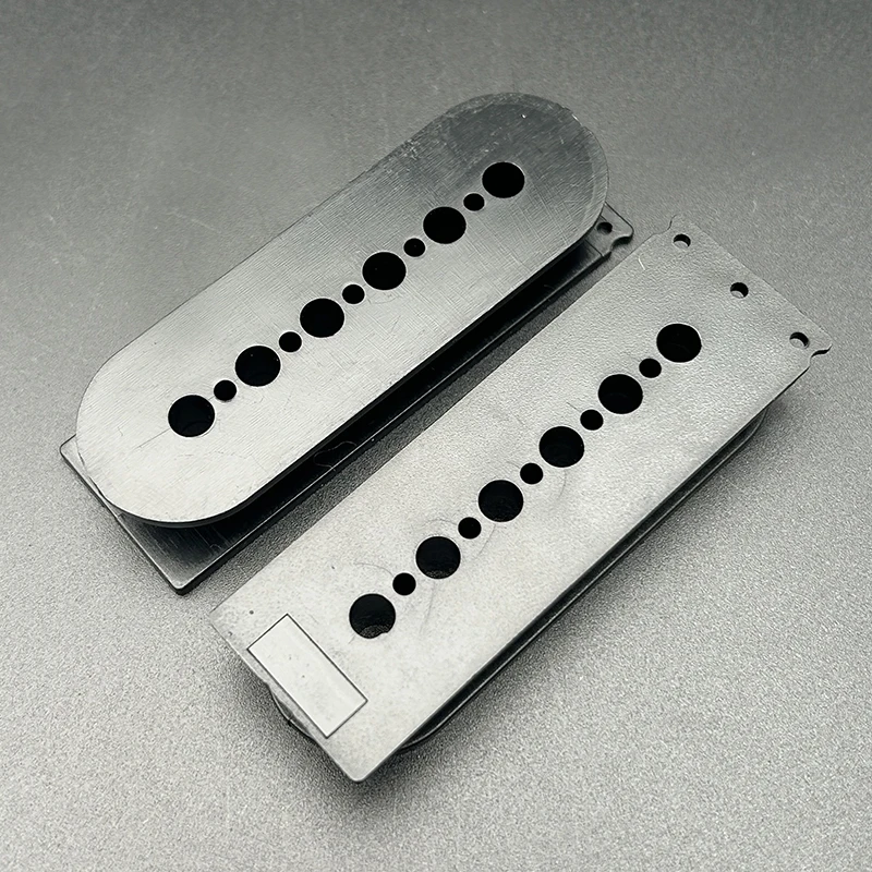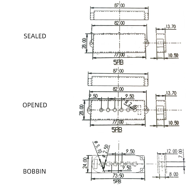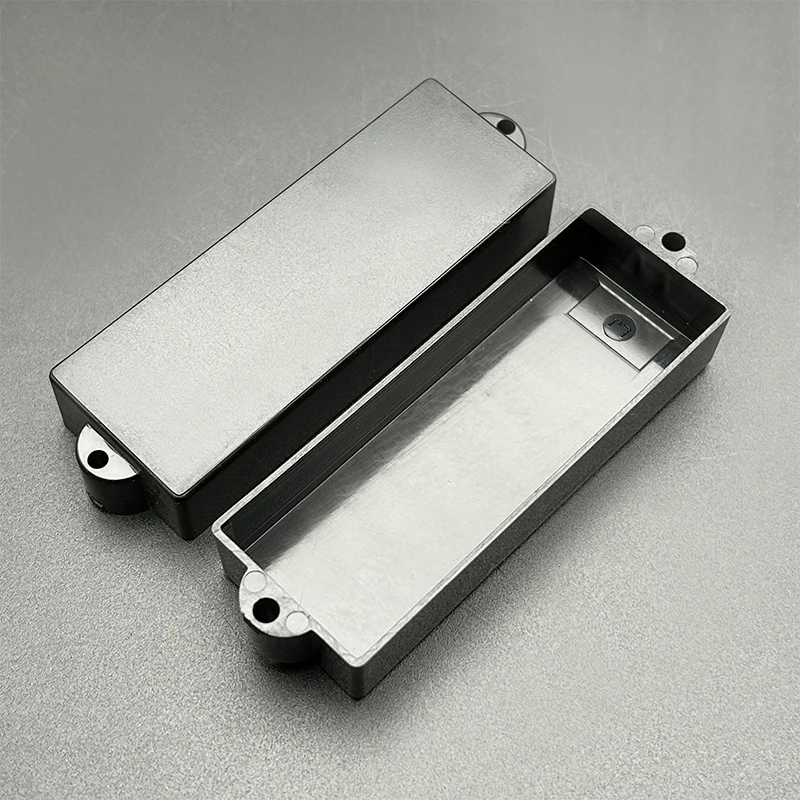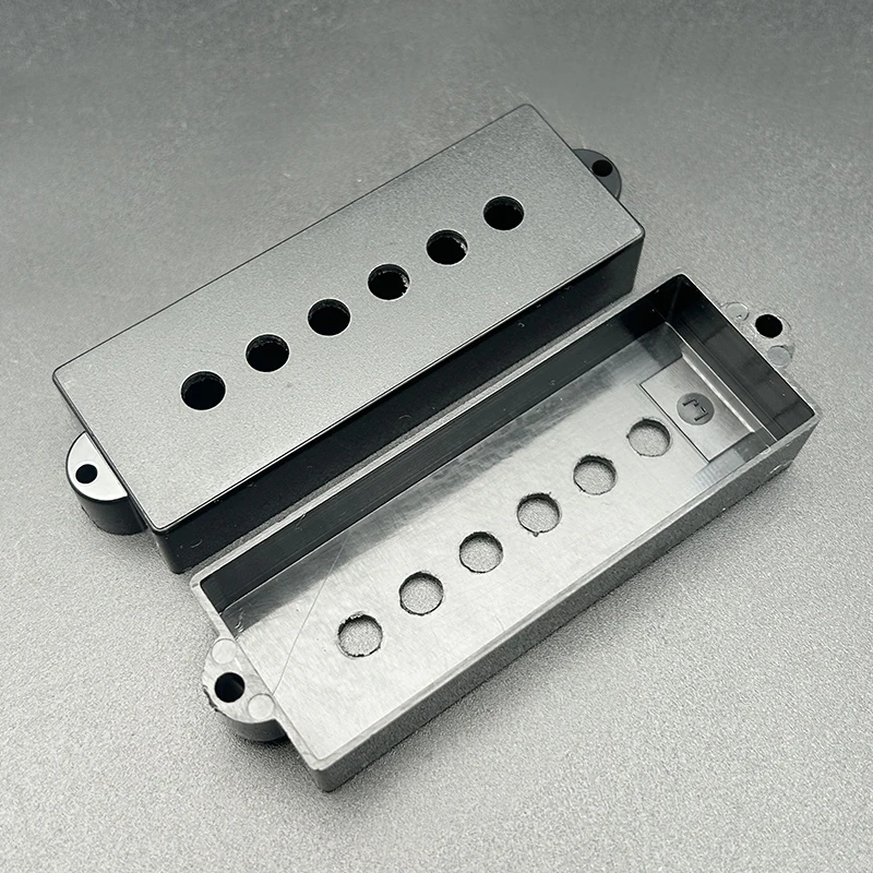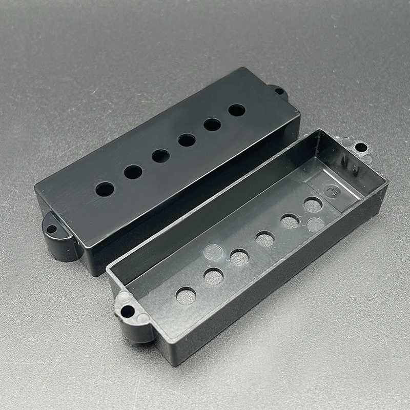 Enhance your Precision Bass guitar with this set of 4 black pickup covers and bobbins, specifically designed for 5-string models. Made of durable plastic, these covers are available in a smooth or matte finish and feature both opened and sealed types. Each cover is rectangular with two screw holes for easy installation, ensuring a secure fit for your electric bass. This 100% new product comes fully equipped to replace or upgrade your bass guitar pickups, providing a sleek and minimalist look that complements any style. Enjoy a seamless upgrade and elevate your playing experience with these essential components.