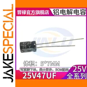 Upgrade your electronic projects with this pack of 50 high-quality aluminum electrolytic capacitors. Designed for durability and precision, these capacitors feature a sleek black cylindrical body with a shiny, smooth surface and a subtly rounded top, giving them a refined, modern look. The crisp white printed text on each capacitor clearly displays its specifications: 47µF capacitance and 25V rated voltage. These through-hole components have long, straight metallic leads, making them easy to install on circuit boards. With an operational temperature of up to 105°C, they are suited for various general-purpose electronic applications. Whether you're repairing, designing, or prototyping, these capacitors provide reliable performance and excellent capacity stability for your projects.