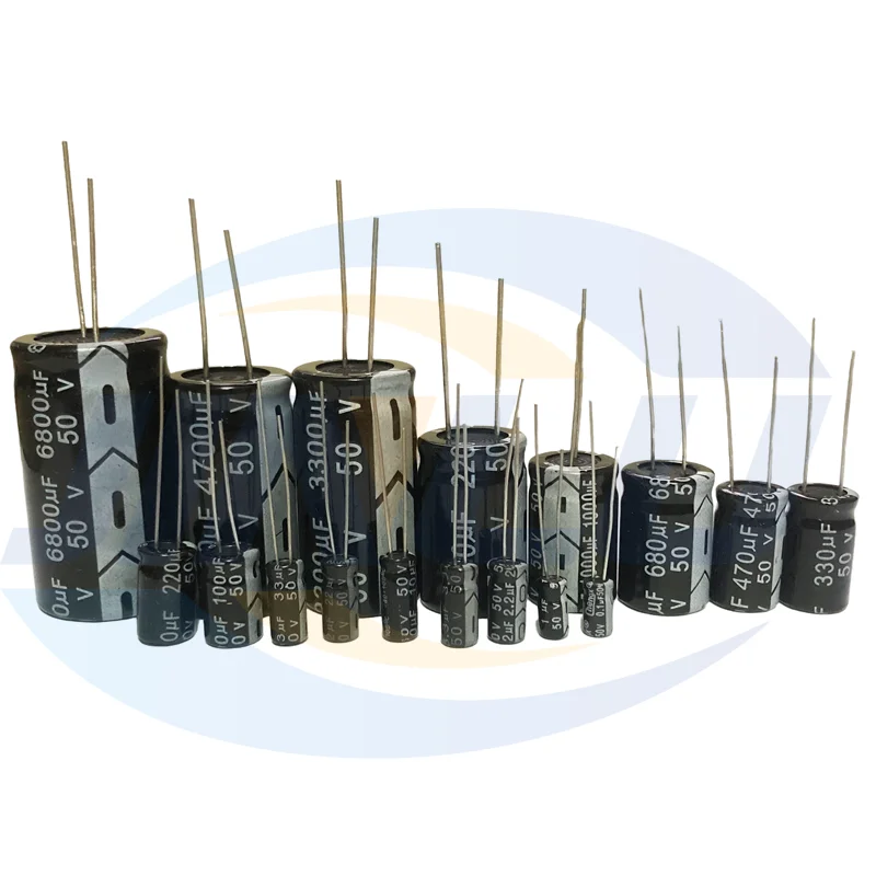 - Contains 50 fixed aluminum electrolytic capacitors, rated at 50V with a capacitance of 3.3μF, perfect for various general-purpose circuit applications requiring reliable power filtering.