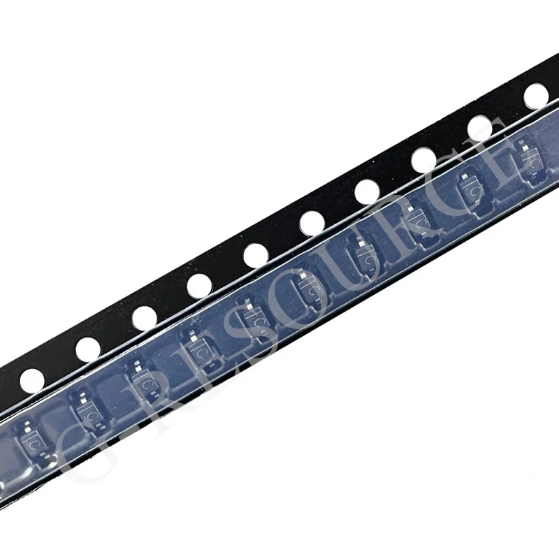 Experience reliable power management with this strip of 50 BAT165E6327 Schottky rectifier diodes, housed in a compact SOD-323 surface-mount package. Designed for high efficiency in circuit rectification, these diodes feature a streamlined, flat profile with tiny markings for easy polarity identification. The black tape ensures precise placement during assembly, while the transparent cover provides visibility for quick inspection. Their small, rectangular form combines modern aesthetic with robust functionality, making them ideal for compact electronic devices. You can confidently incorporate these new, high-quality diodes into your designs, knowing their specifications meet demanding performance standards, ensuring stability and longevity in your projects. Imagine a seamless integration that elevates your circuit's reliability and efficiency effortlessly.